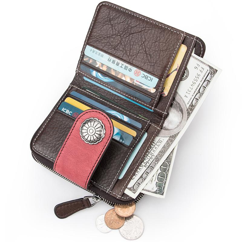 Design: Brown Large? Bifold Wallet Leather Mens billfold Small Wallet Zipper Red Card Wallet For Men