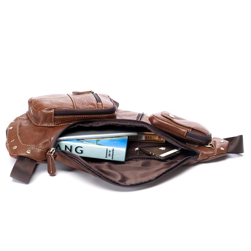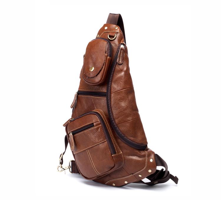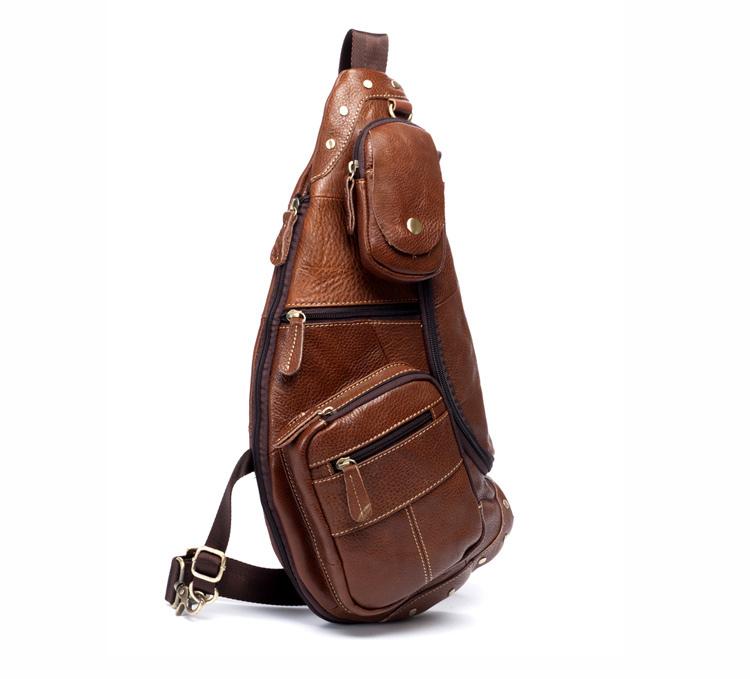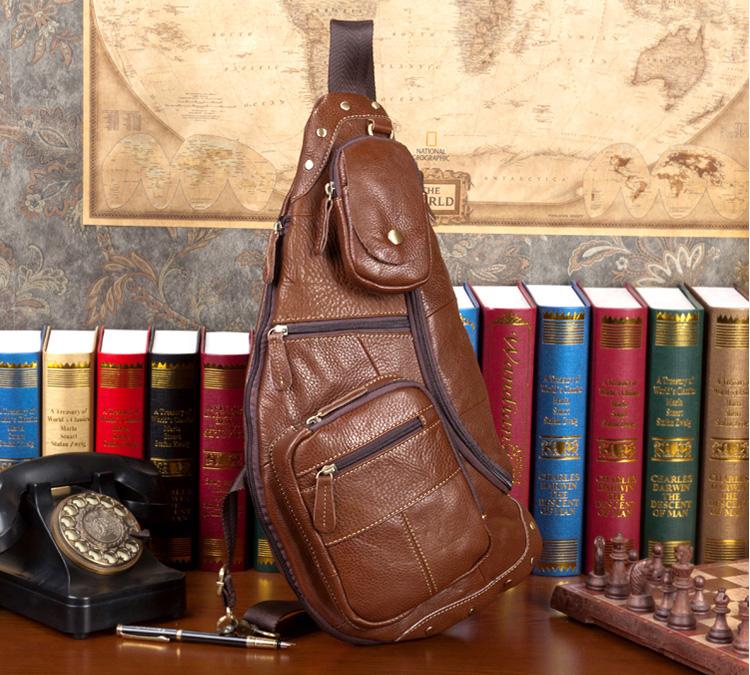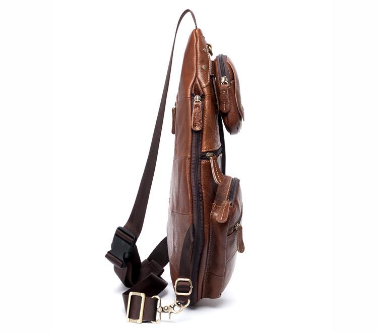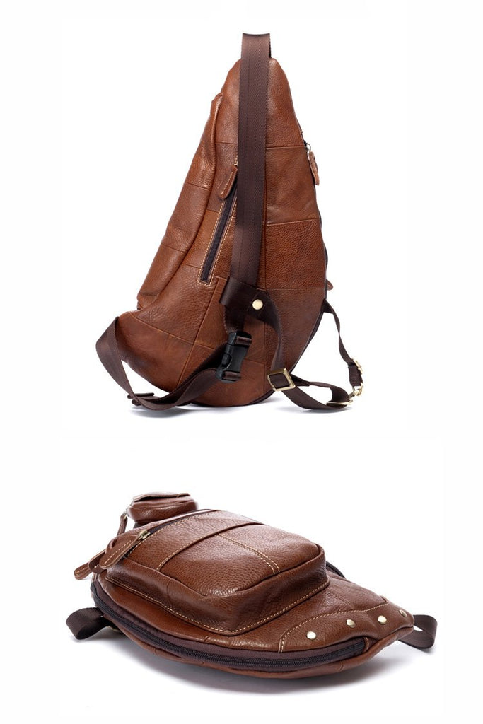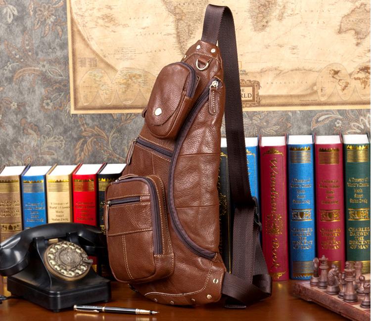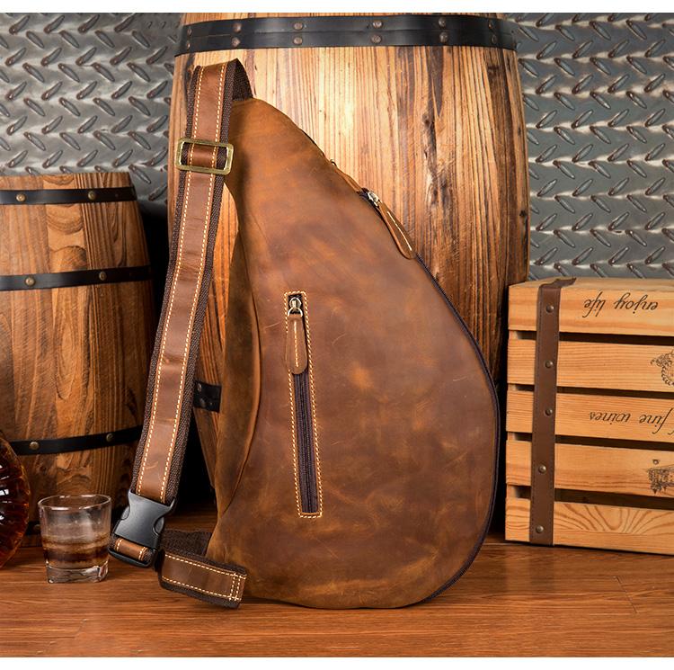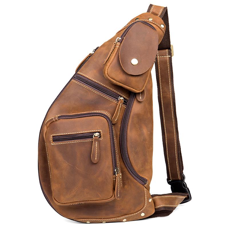 Design: Brown Leather Mens Cool 11 inches Sling Bags Light Brown Crossbody Bag Chest Bag for Men