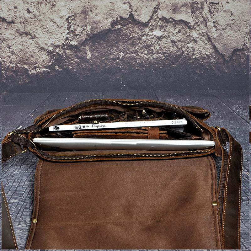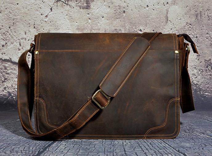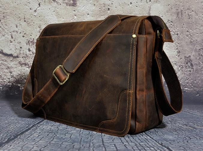 Style: Brown Leather Mens SIDE BAG COURIER BAG Messenger Bag Shoulder Bag for Men