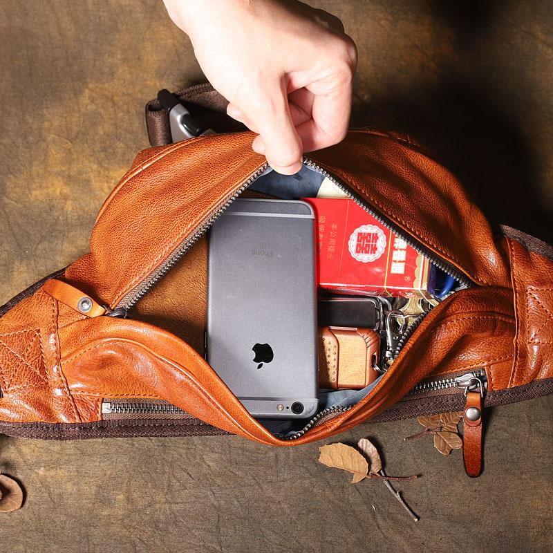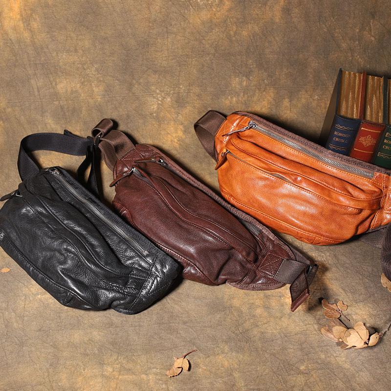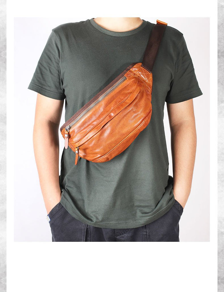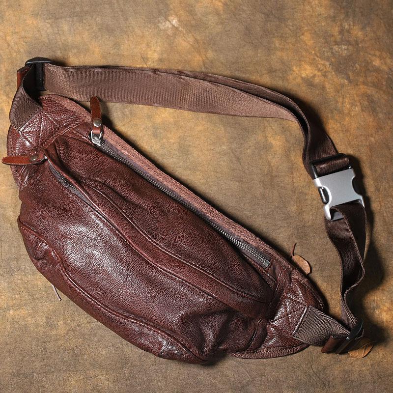 Style: Brown MENS Suede 8 inches Black LEATHER FANNY PACK Chest Bag WAIST BAGS For Men