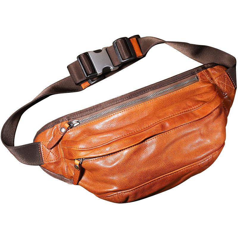 Design: Brown MENS Suede 8 inches Black LEATHER FANNY PACK Chest Bag WAIST BAGS For Men