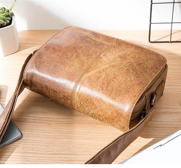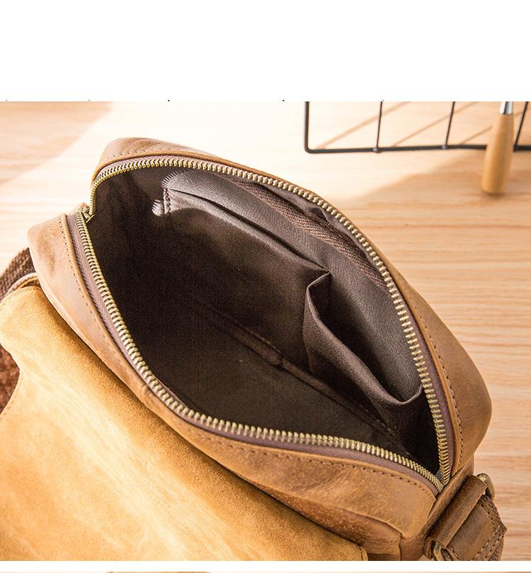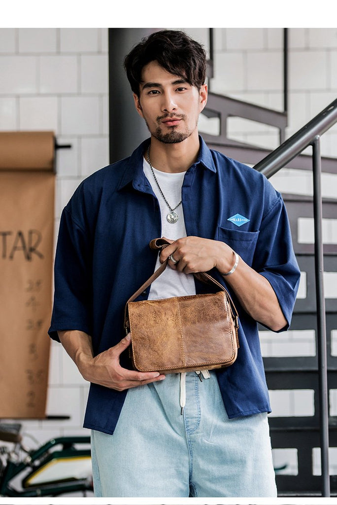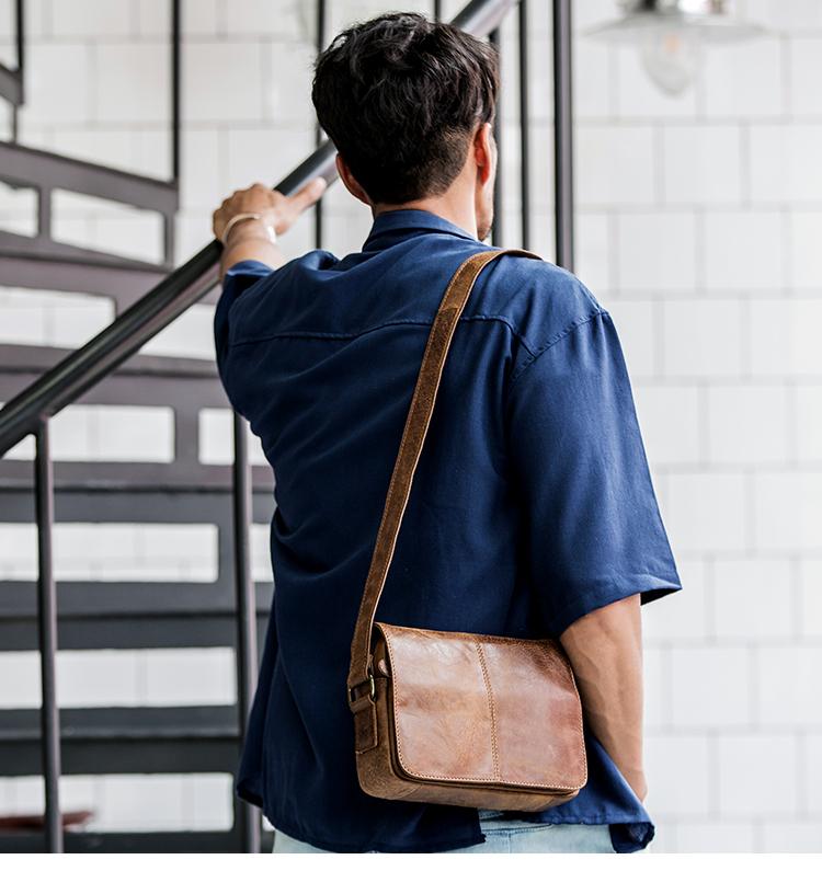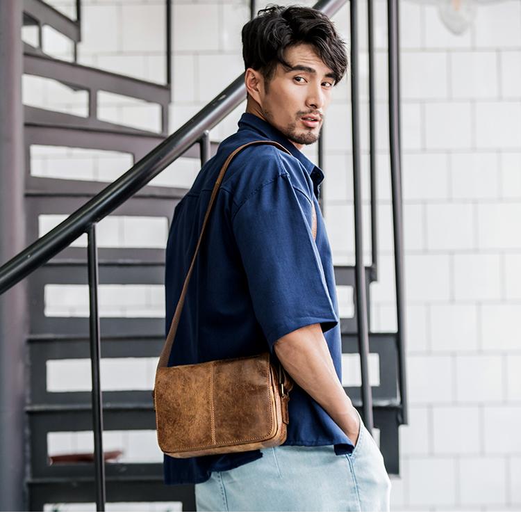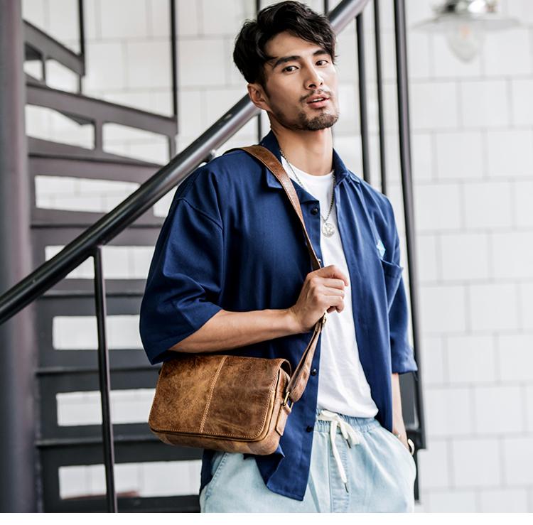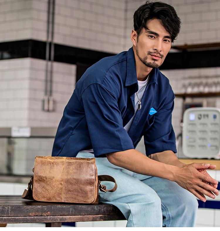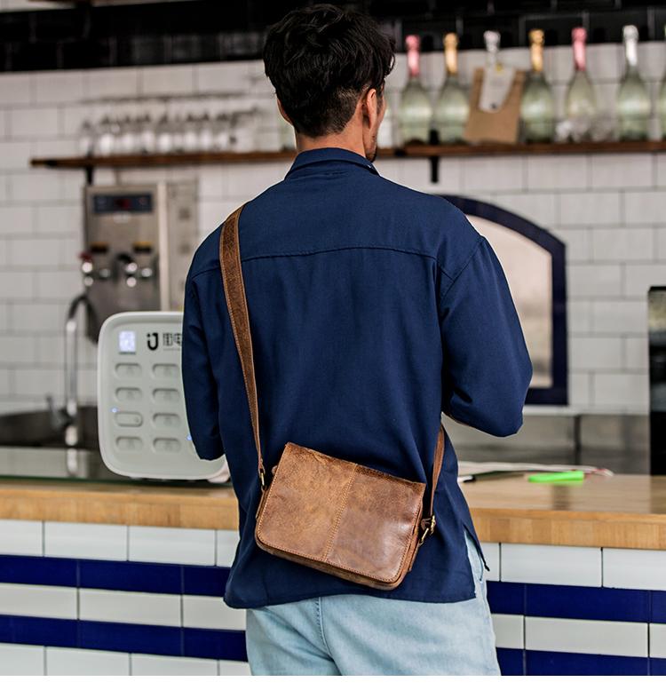 Design: Brown Retro Leather Mens Horirzontal Mini Side Bag Small Messenger Bags Shoulder Bag for Men