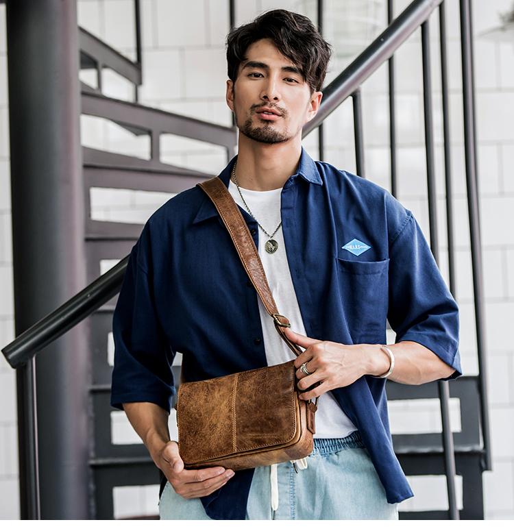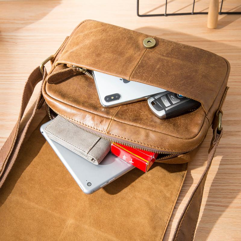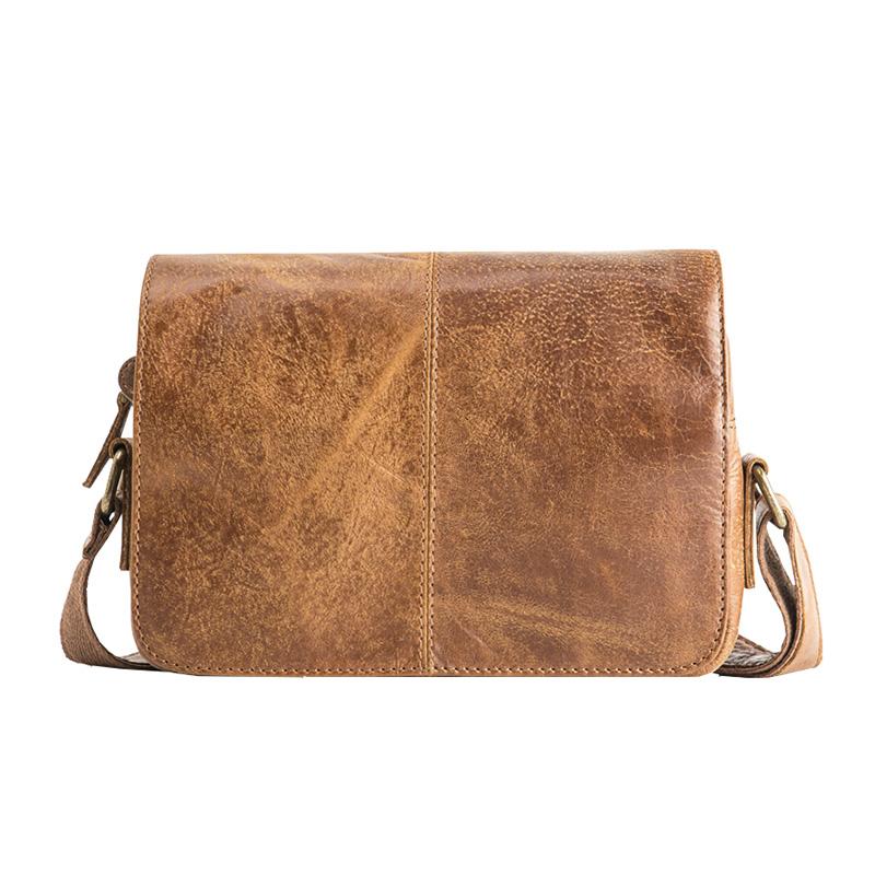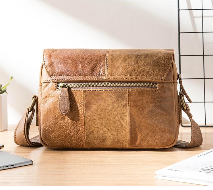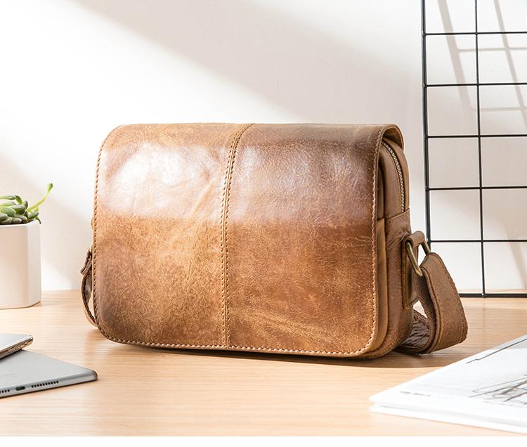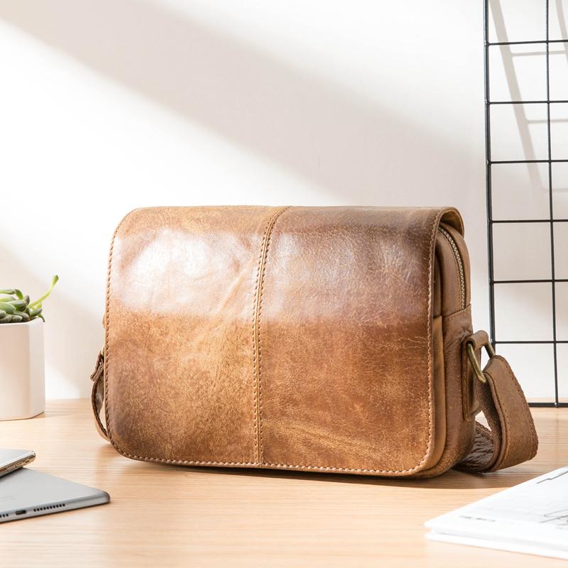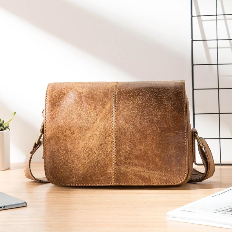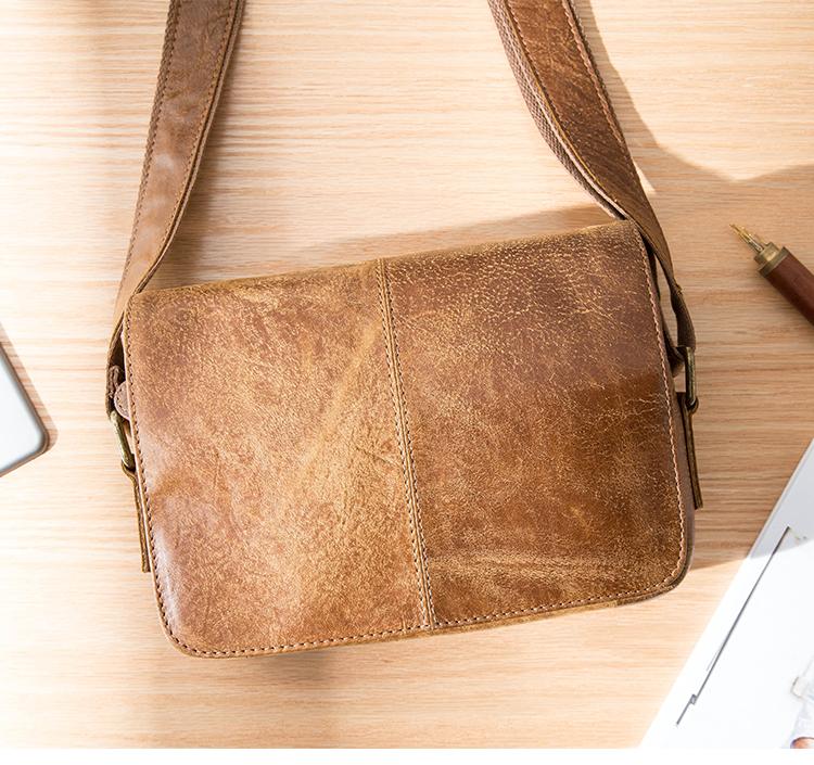 Design: Brown Retro Leather Mens Horirzontal Mini Side Bag Small Messenger Bags Shoulder Bag for Men