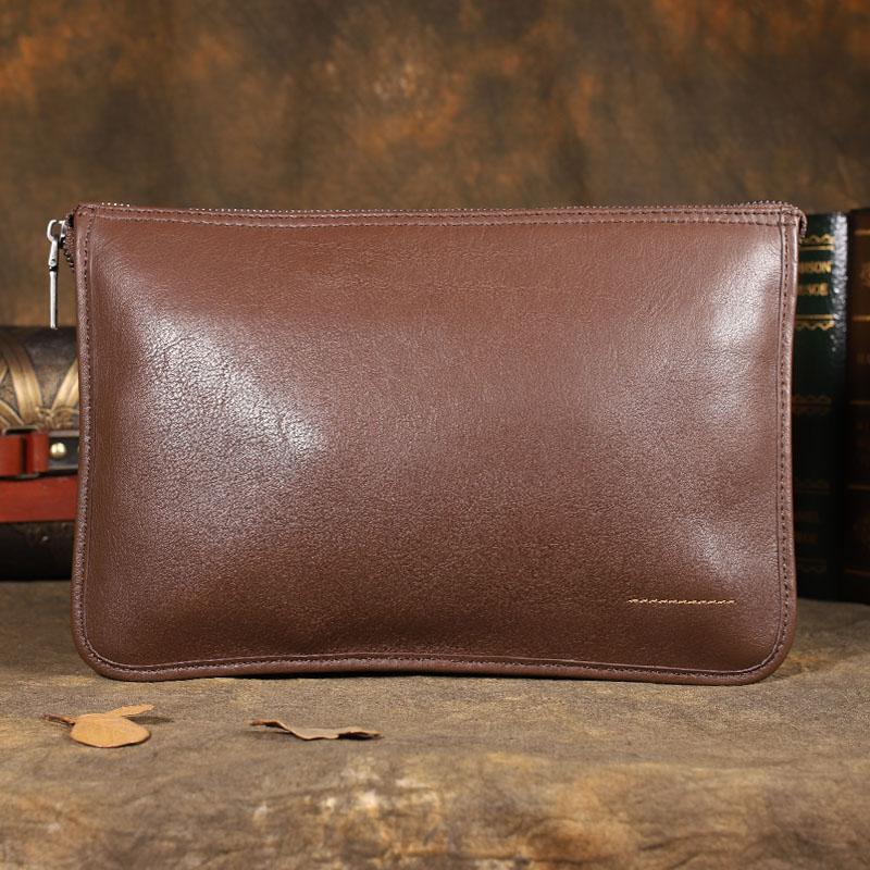 Design: Business Leather Mens Dark Brown Large Leather Wallet Wristlet Bag Black Envelope Bag Clutch Wallet for Men