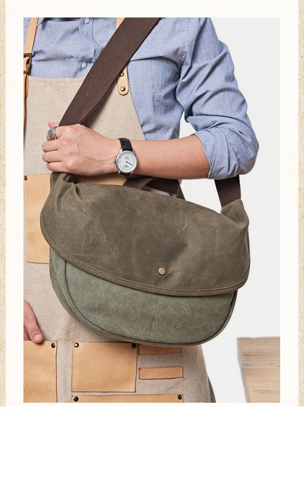 Design: Canvas Cool Mens 12 inches Side Bags Green Canvas Leather Messenger Bags Canvas Travel Courier Bag for Men