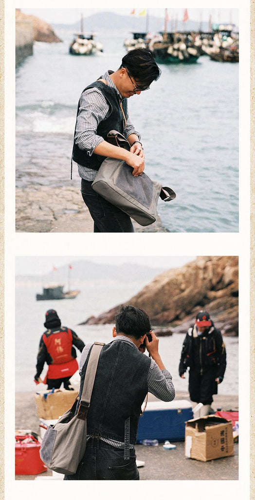 Canvas Mens 14 inches Side Bag Canvas Messenger Bags Canvas Travel Large Courier Bags for Men