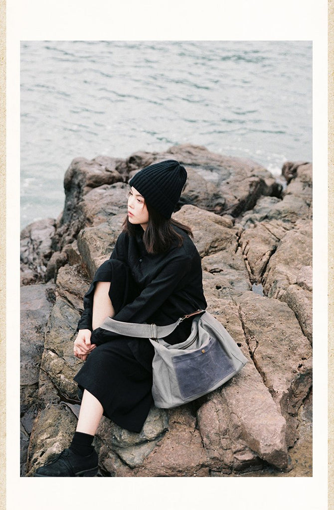Style: Canvas Cool Mens 14 inches Gray Side Bag Canvas Messenger Bags Canvas Travel Shoulder Bag for Men Women