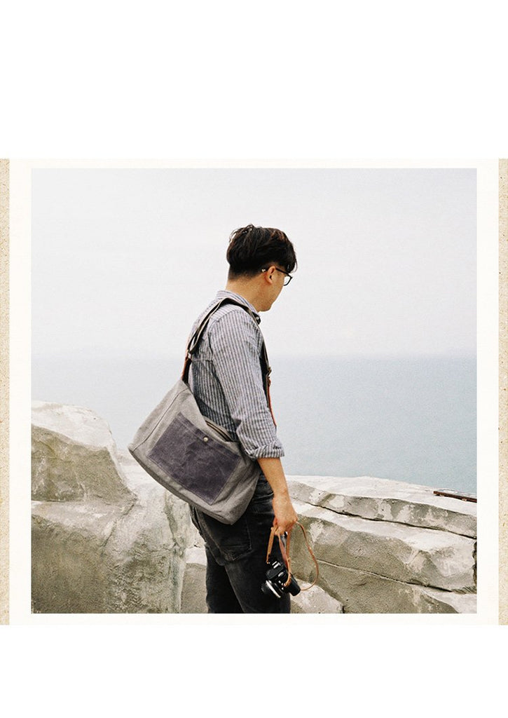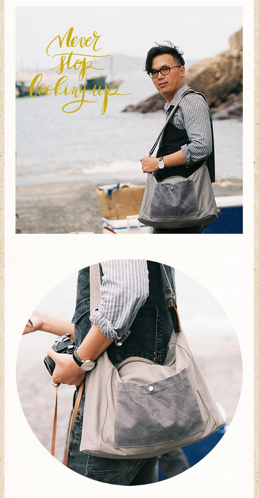 Design: Canvas Cool Mens 14 inches Gray Side Bag Canvas Messenger Bags Canvas Travel Shoulder Bag for Men Womenn