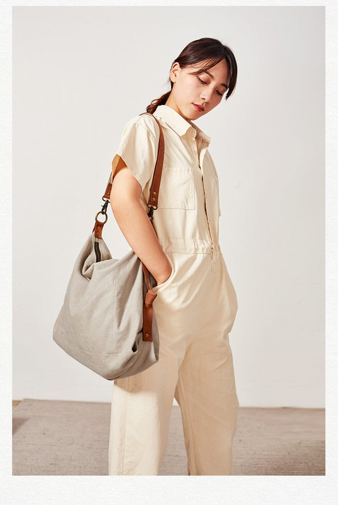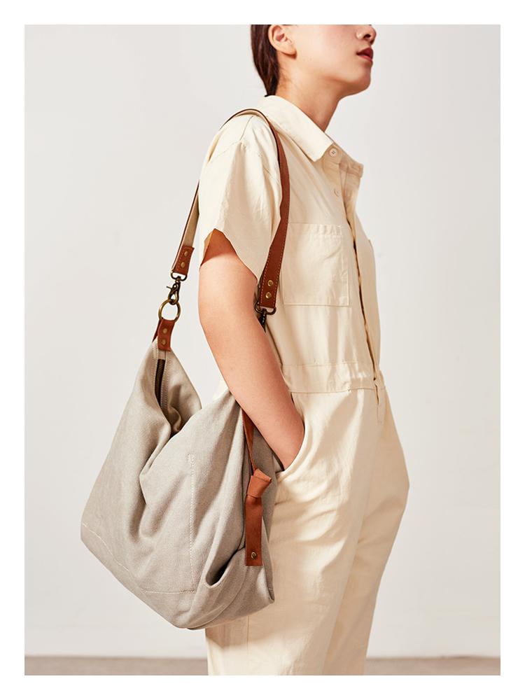 Design: Canvas Cool Mens Shoulder Bag Light Gray Canvas Handbag Canvas Tote Bag for Men Women