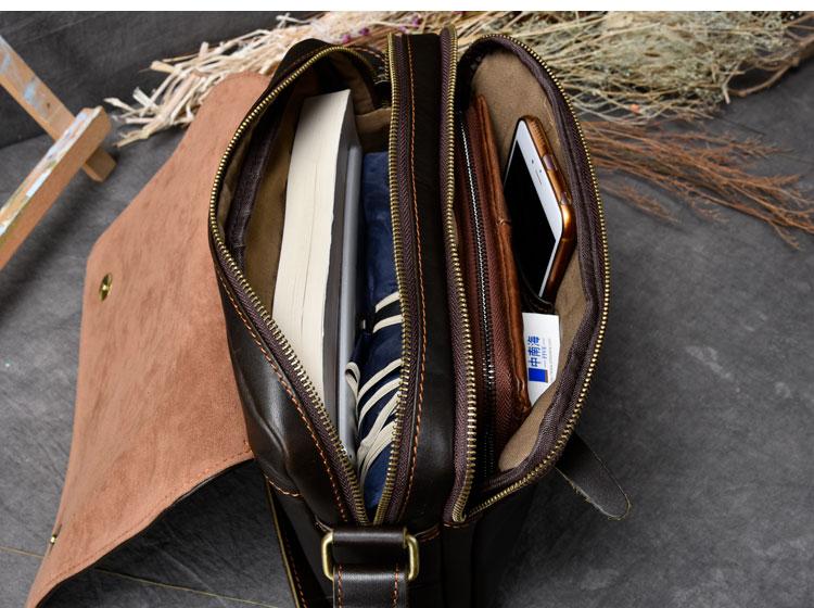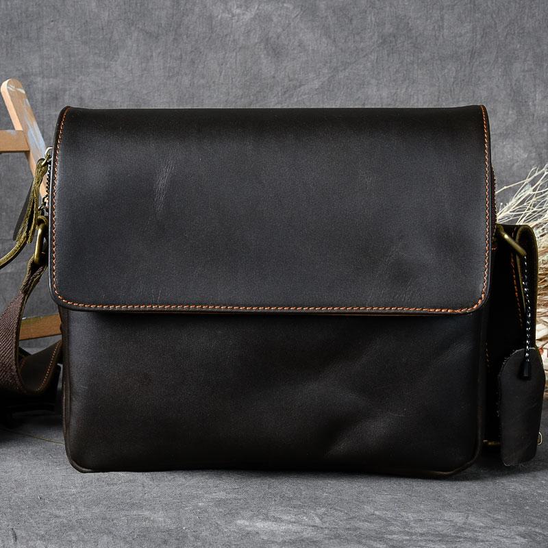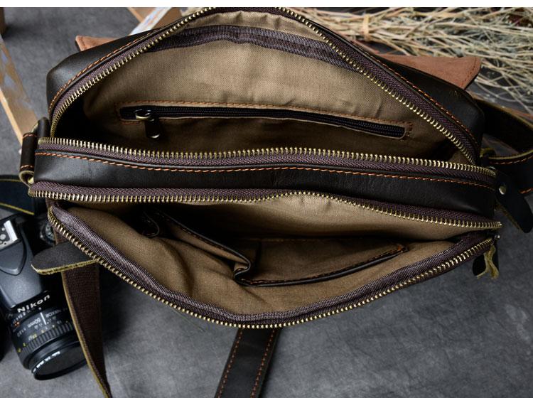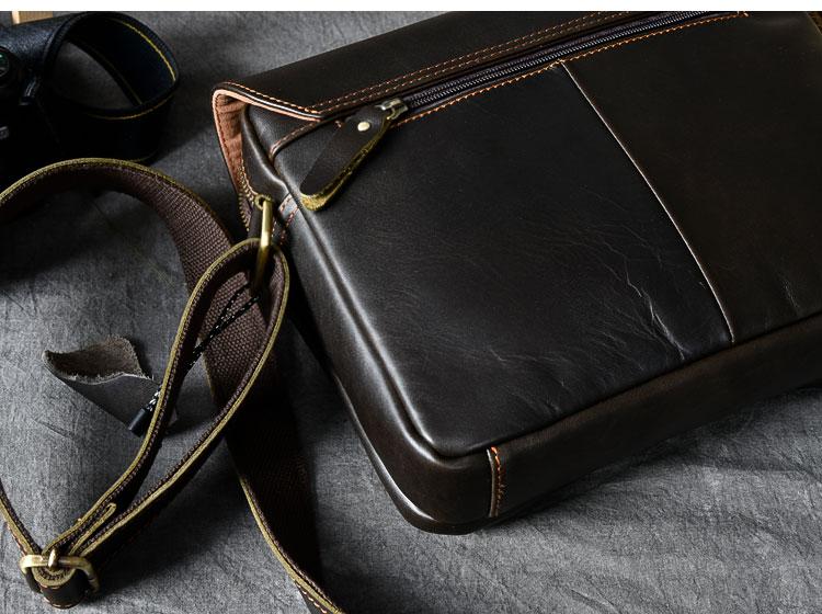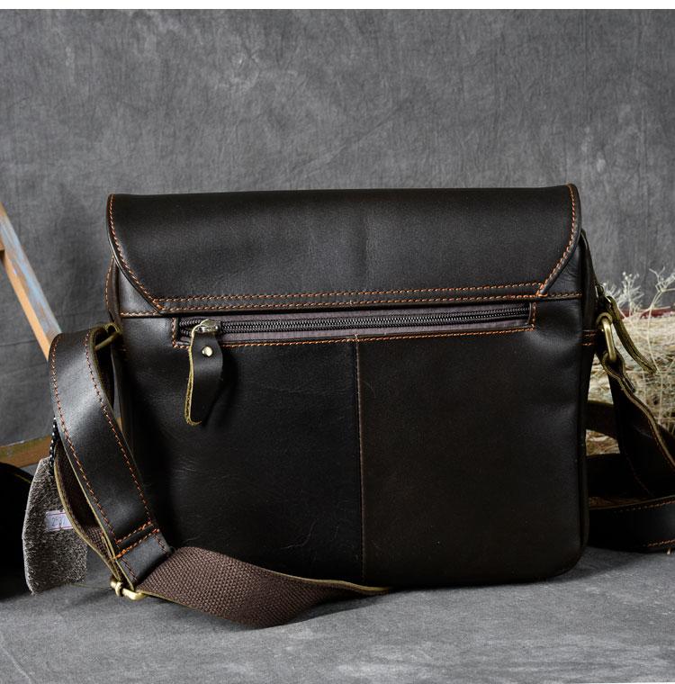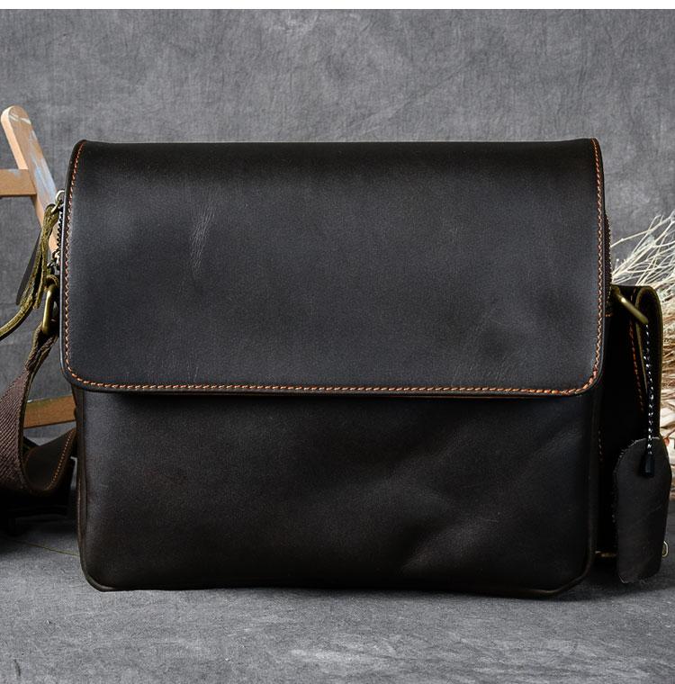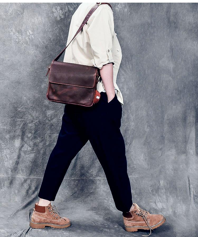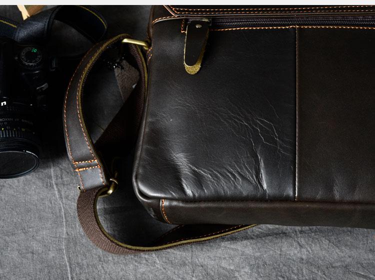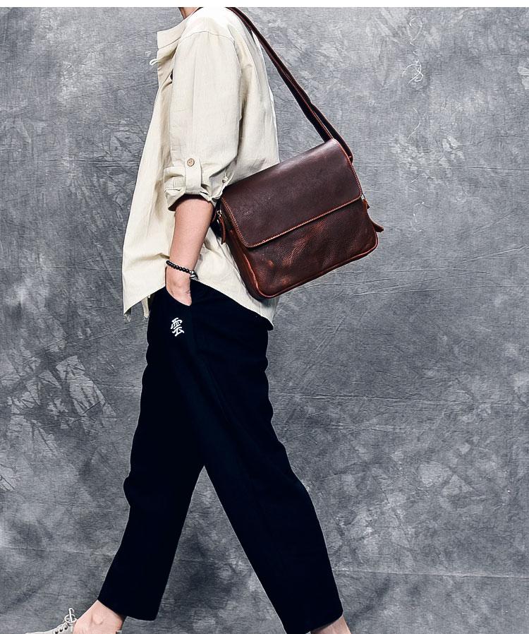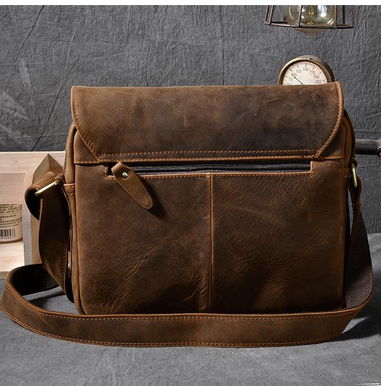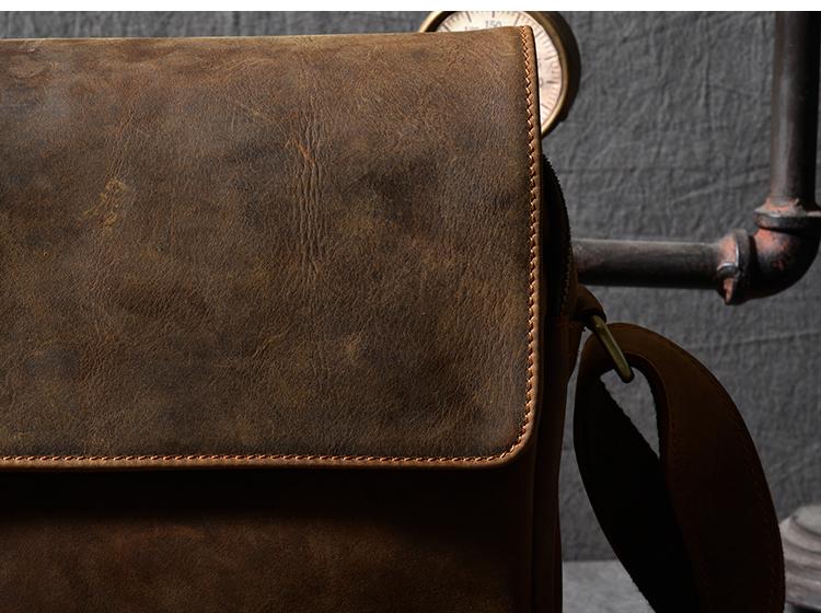 Design: Leather Mens 8‘’ Red Brown Small Side Bag Retro Messenger Bag Shoulder Bag For Men