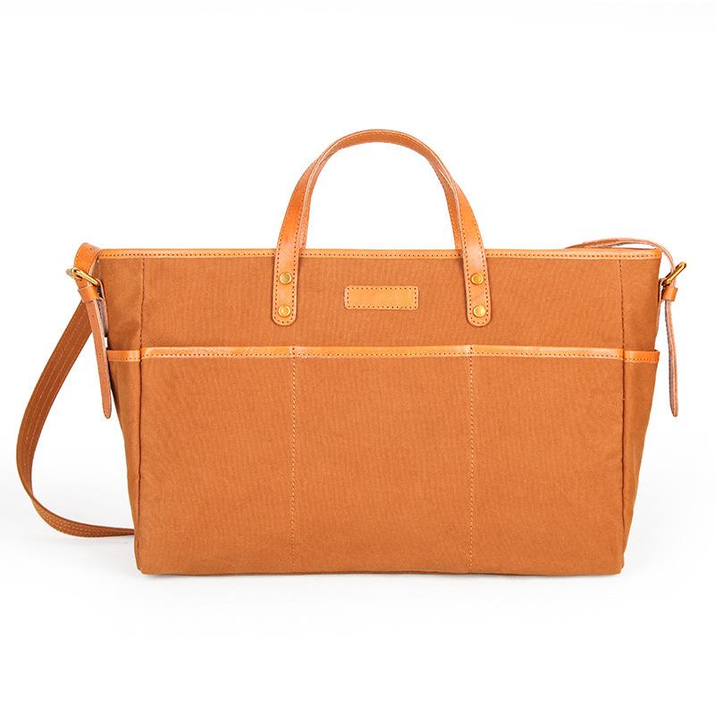 Style: Canvas Leather Mens Simple Portable Caramel Tote Bag Shoulder Bag Army Green Diagonal Bag for Men