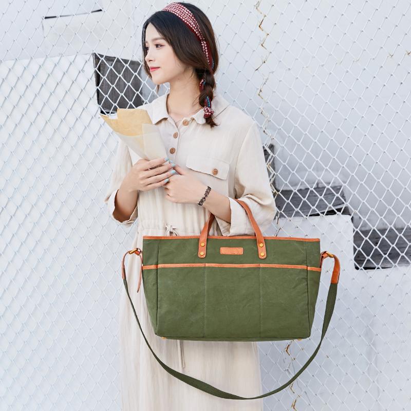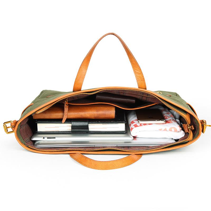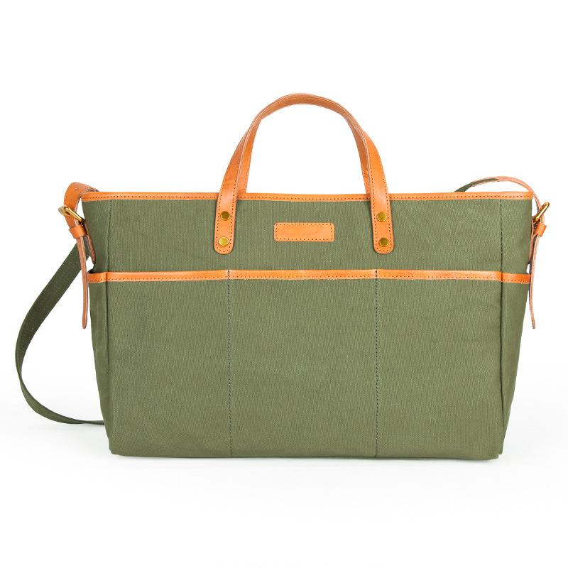 Design: Canvas Leather Mens Simple Portable Caramel Tote Bag Shoulder Bag Army Green Diagonal Bag for Men