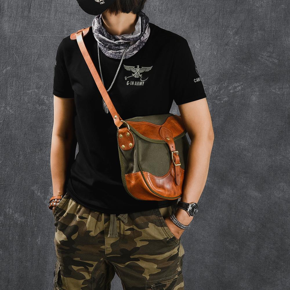 Style: Canvas Leather Mens Womens Army Green Portable Side Bag Messenger Bag Small Shoulder Bag For Men