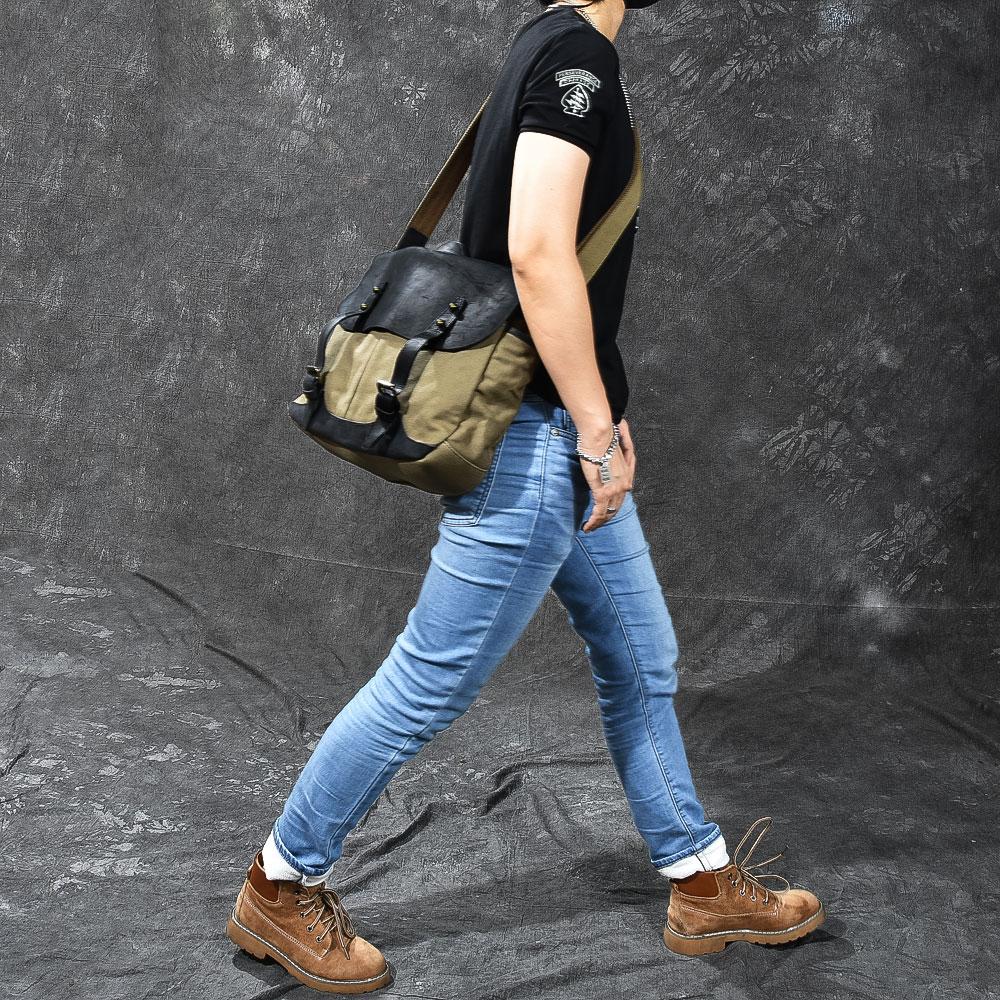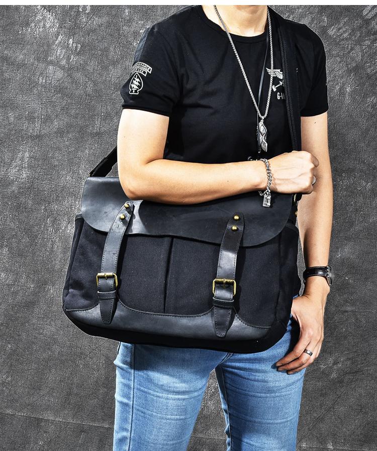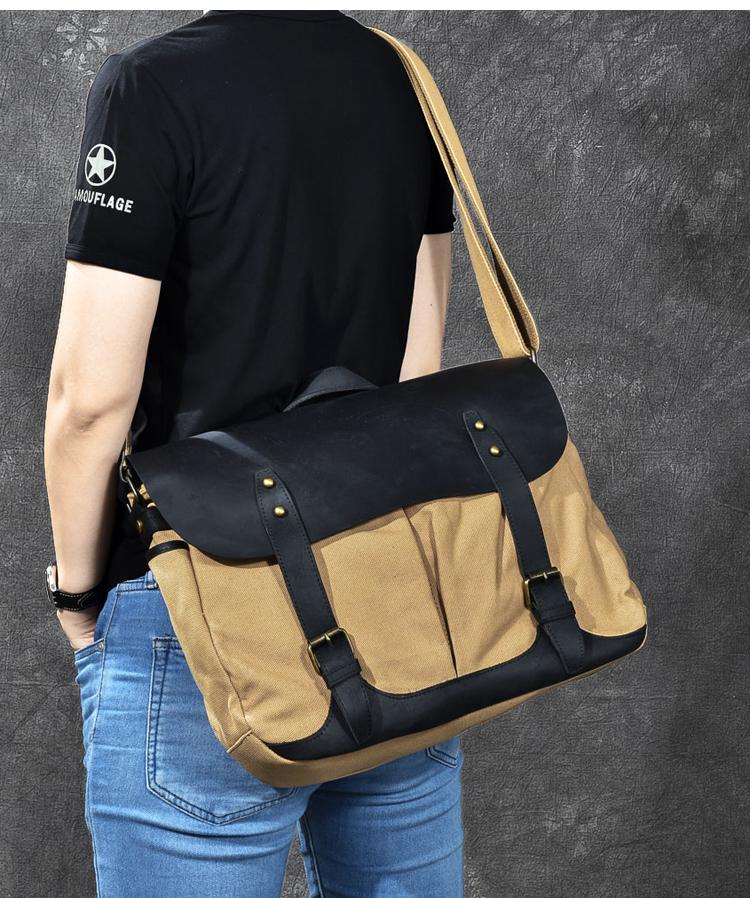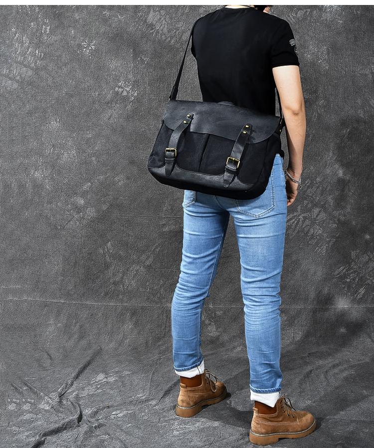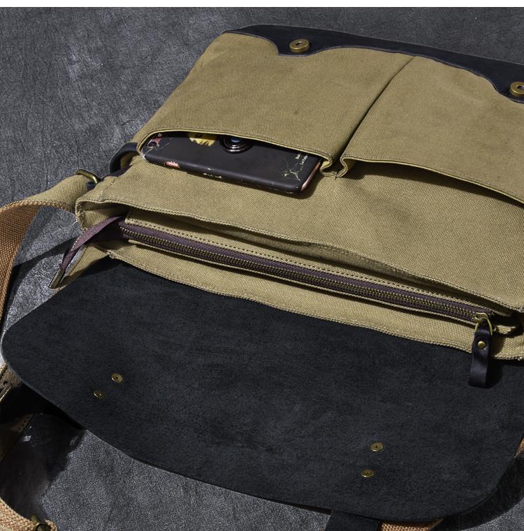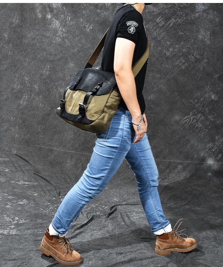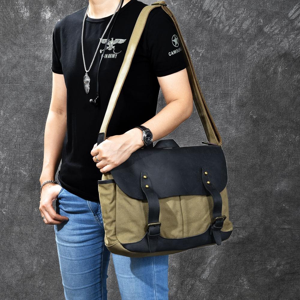 Design: Canvas Leather Mens Womens Army Green Postman Side Bag Black Messenger Bag Large Shoulder Bag For Men