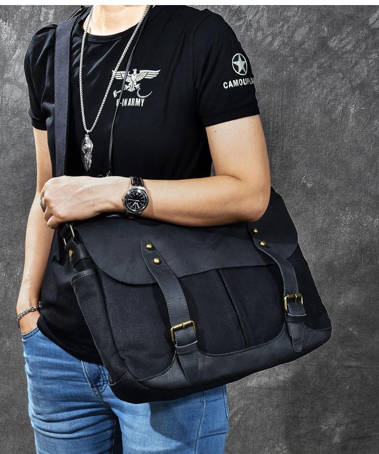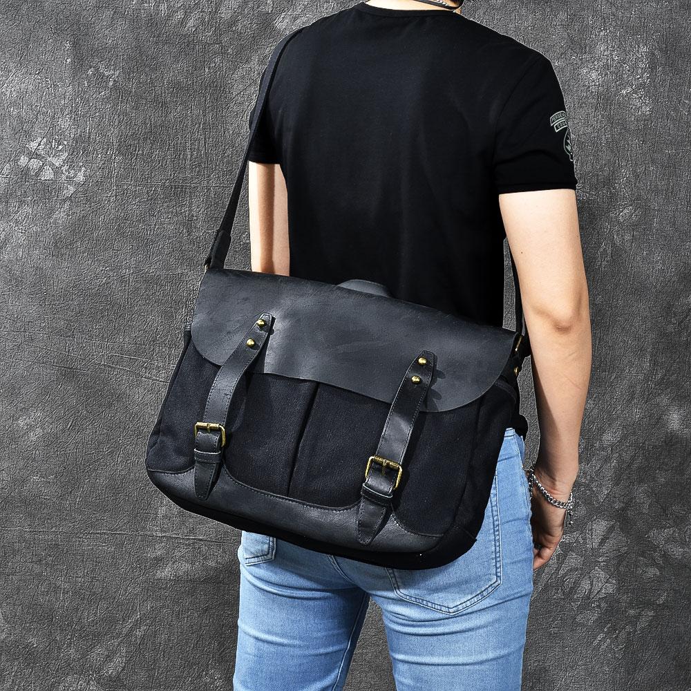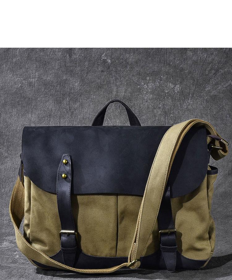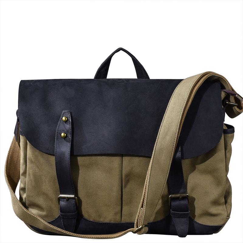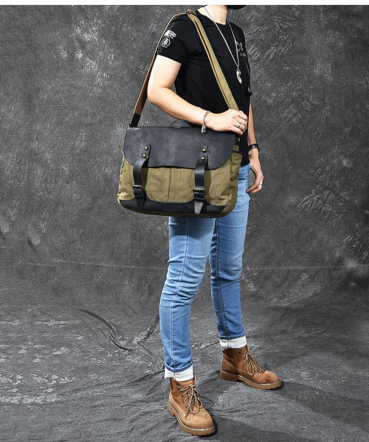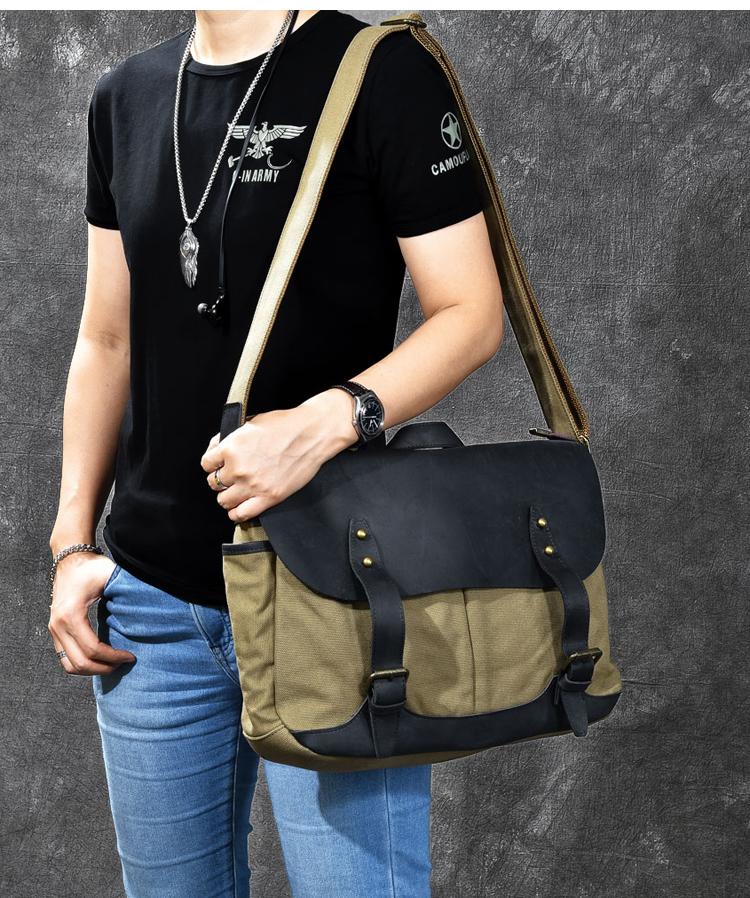 Style: Canvas Leather Mens Womens Army Green Postman Side Bag Black Messenger Bag Large Shoulder Bag For Men