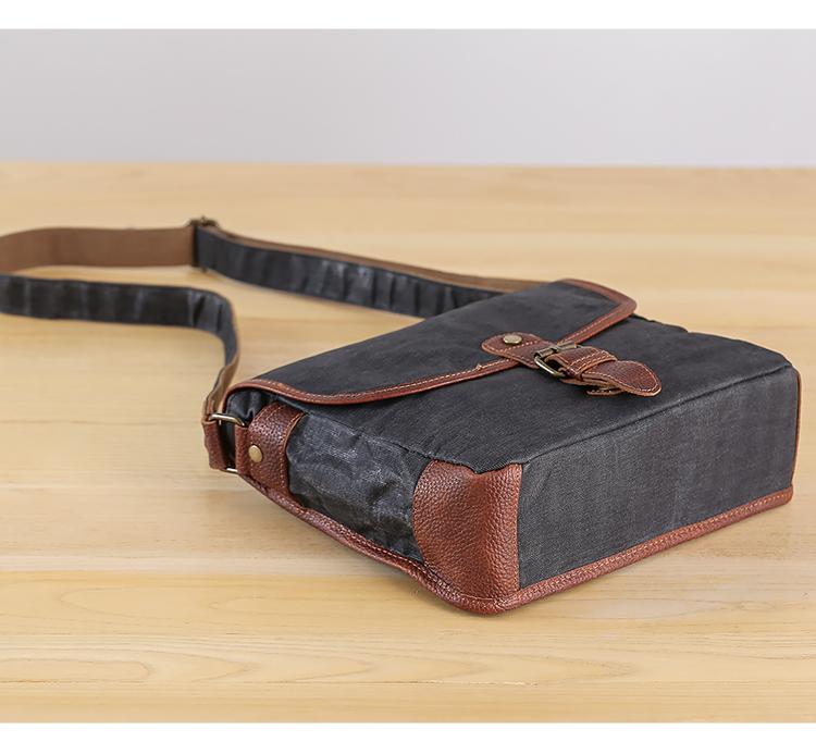 Canvas Mens Small Side Bag 10'' Courier Bag Black Postman Bag Messenger Bag for Men