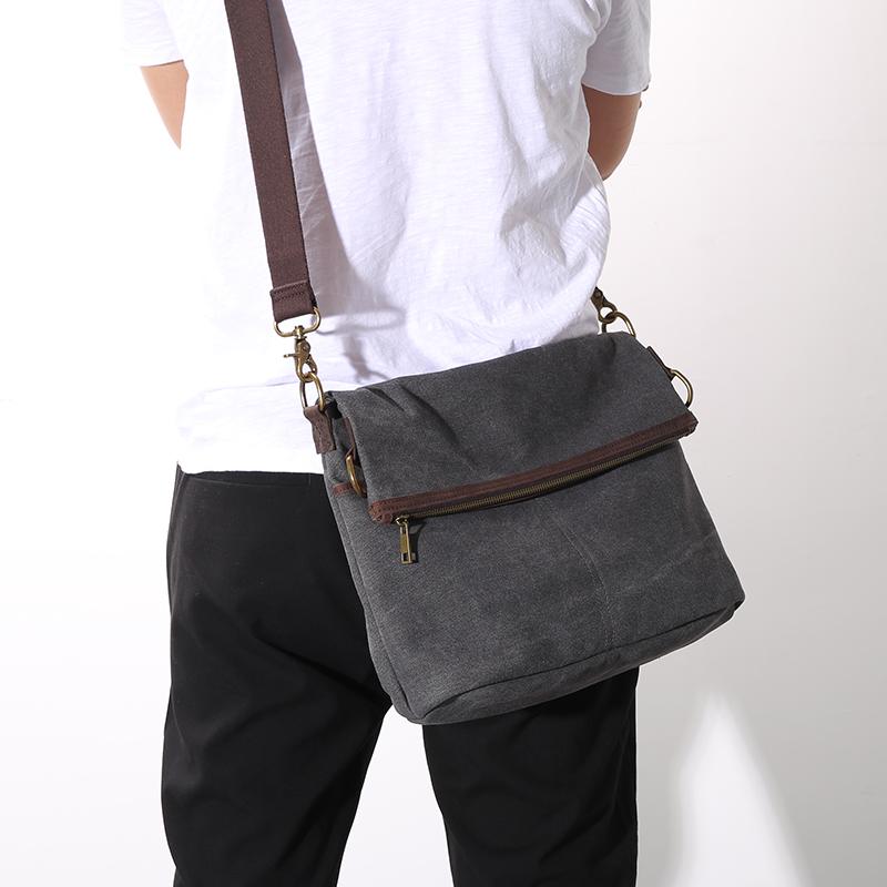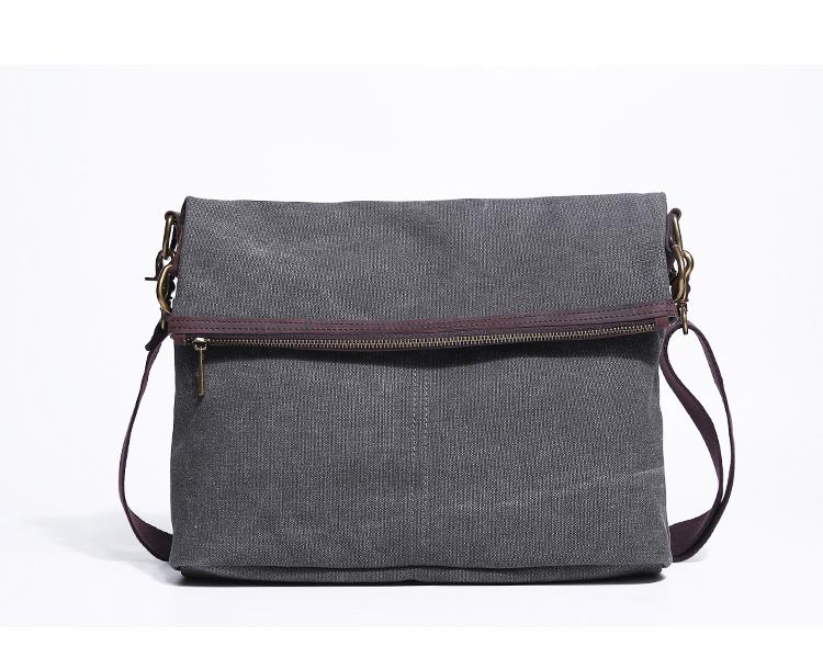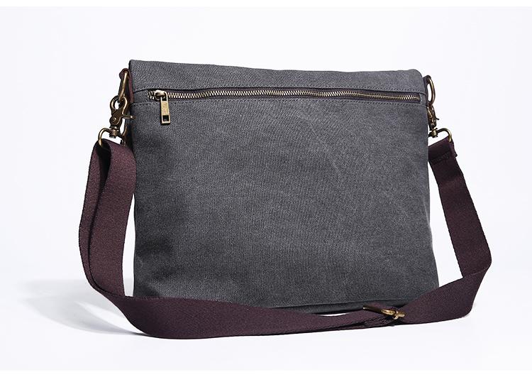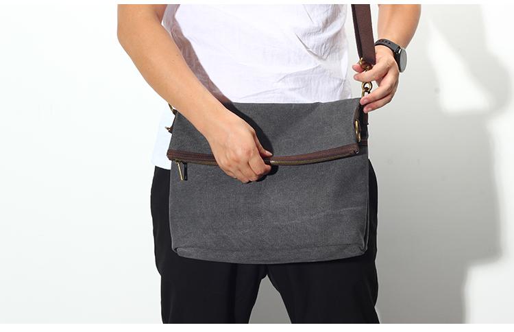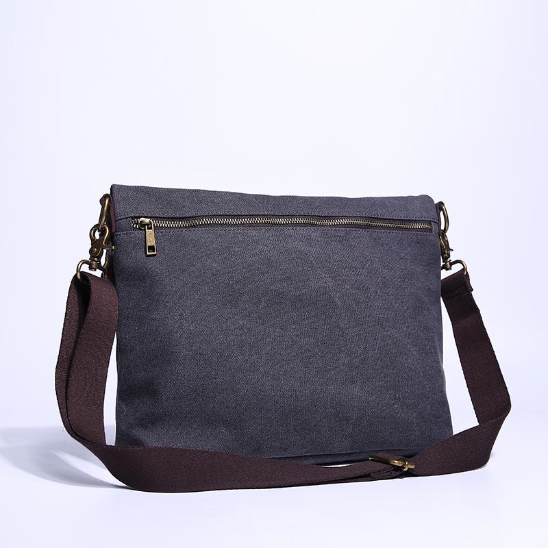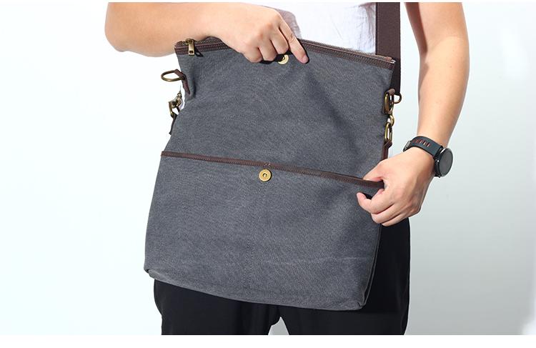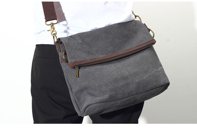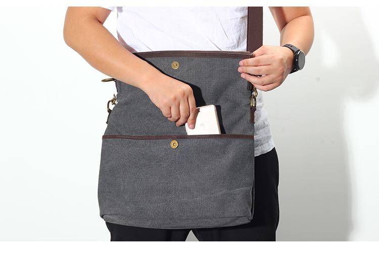 Canvas Mens 13‘’ Side Bag Courier Bag Gray Postman Bag Messenger Bag for Men