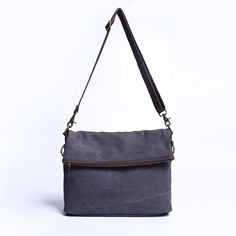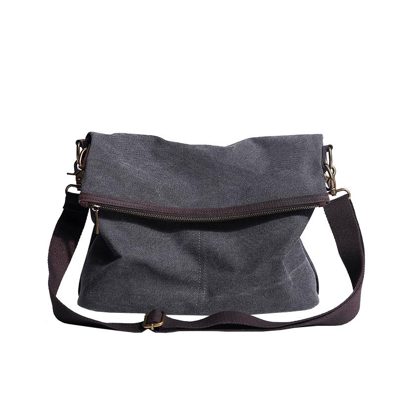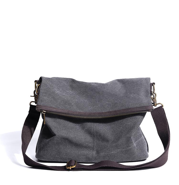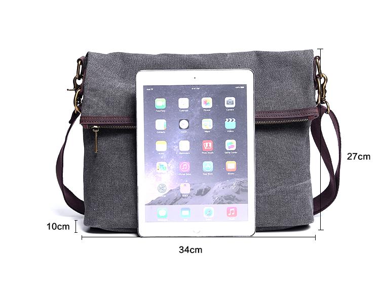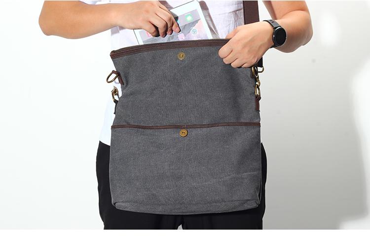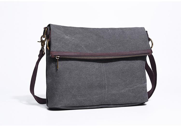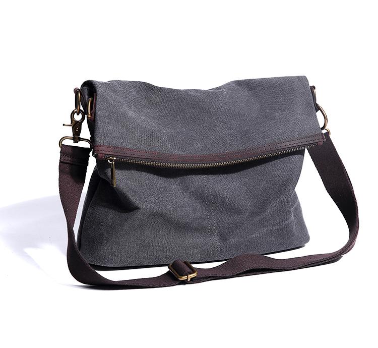 Canvas Mens 13‘’ Side Bag Courier Bag Gray Postman Bag Messenger Bag for Men