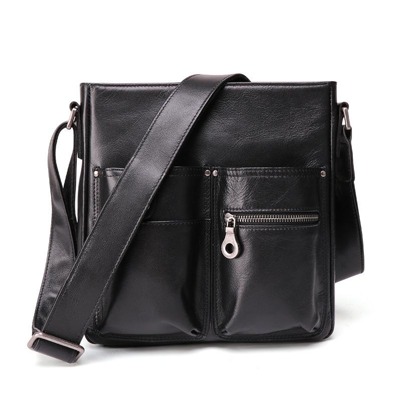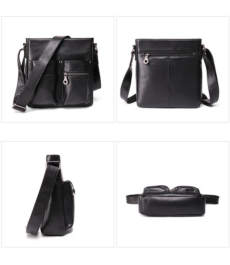 Design: Casual Black LEATHER MENS 8 inches Business Diagonal bag SIDE BAG Shoulder Bag MESSENGER BAG FOR MEN