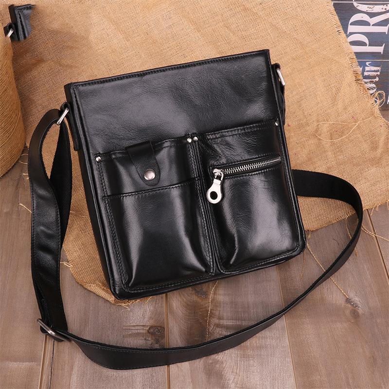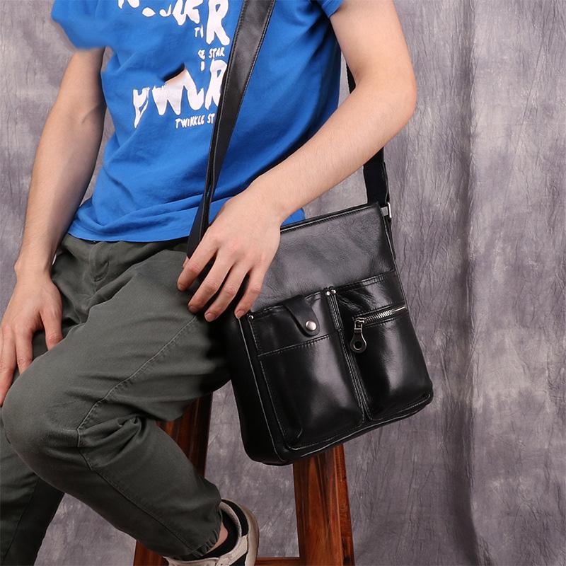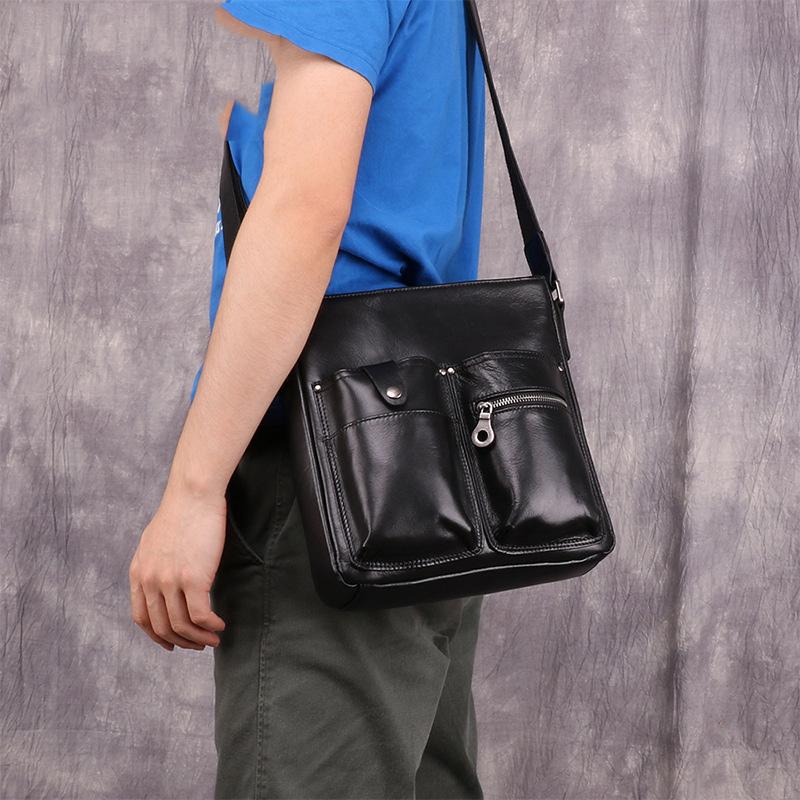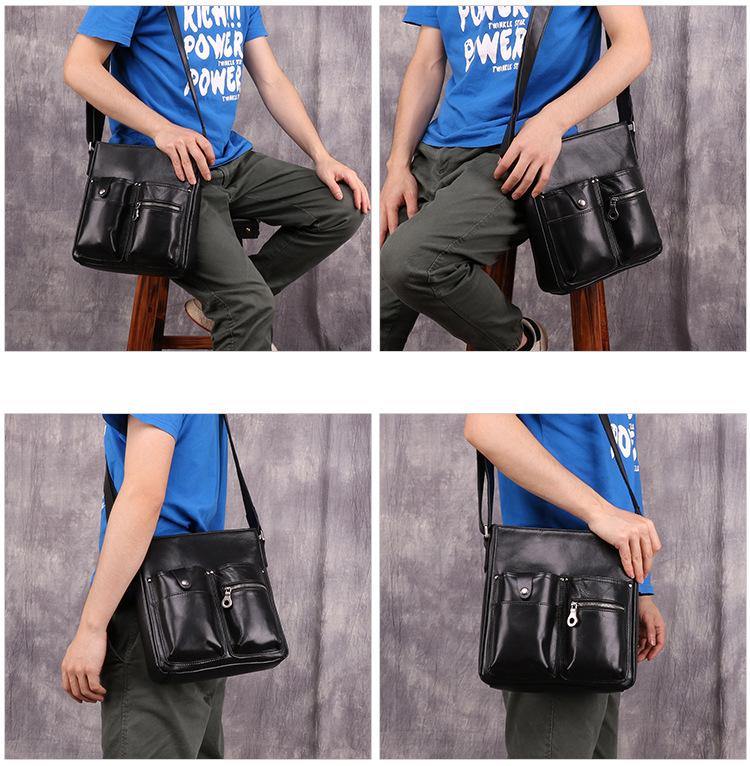 Style: Casual Black LEATHER MENS 8 inches Business Diagonal bag SIDE BAG Shoulder Bag MESSENGER BAG FOR MEN