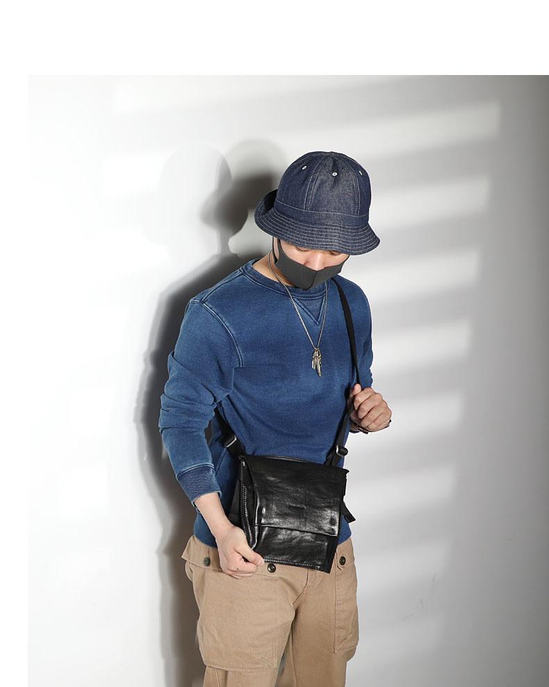 Design: Casual Black Leather Mens Cool 8 inches Side Bag Messenger Bag Brown Postman Courier Bag for Men