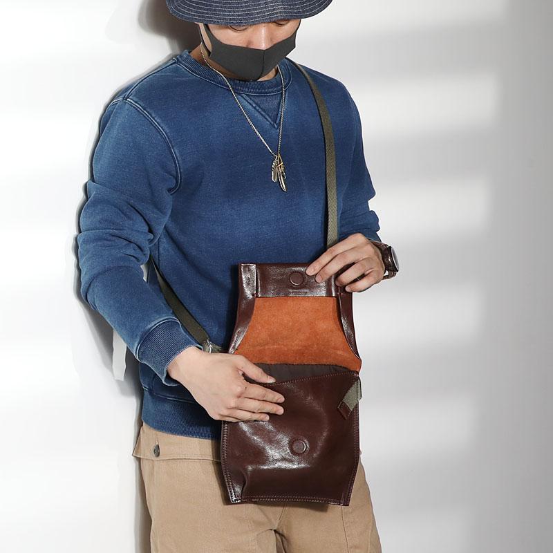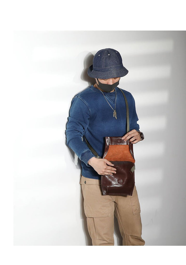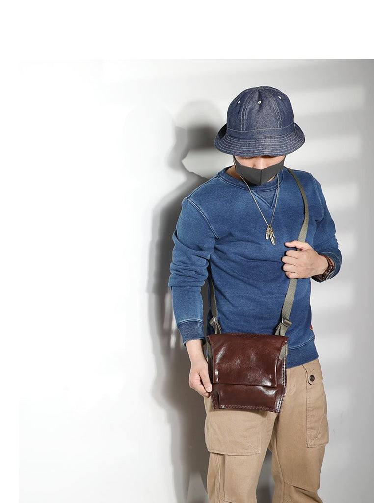 Style: Casual Black Leather Mens Cool 8 inches Side Bag Messenger Bag Brown Postman Courier Bag for Men