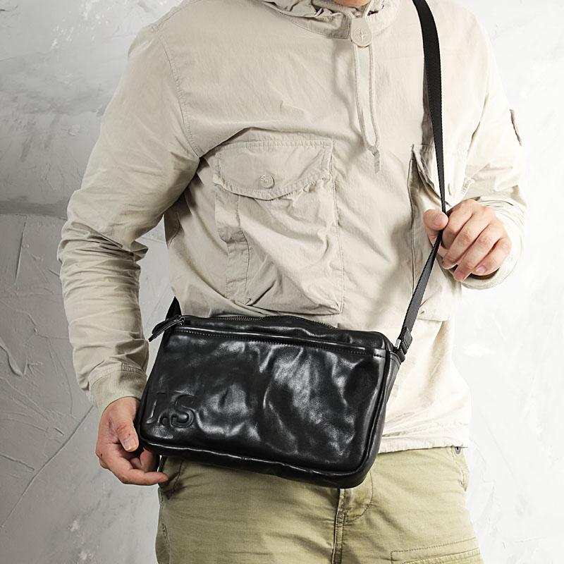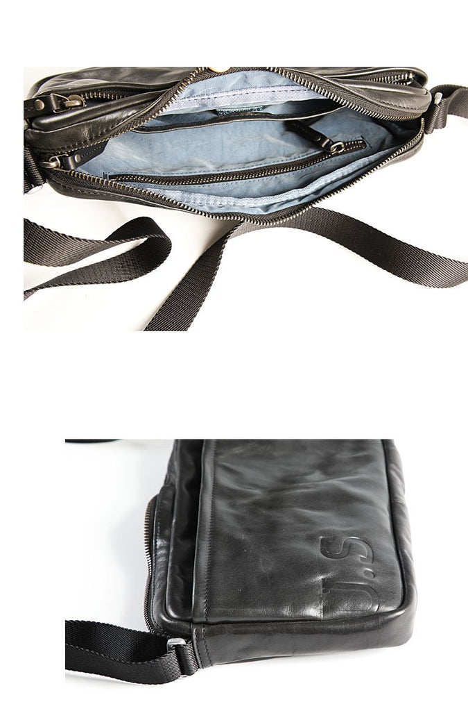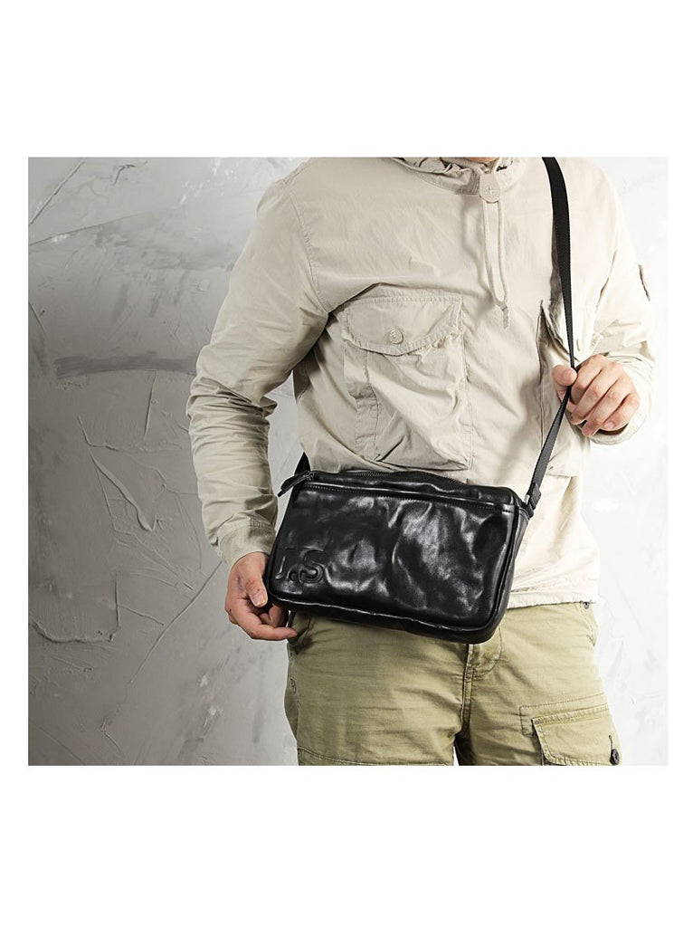 Design: Casual Black Leather Mens Cool Shoulder Bag Messenger Bag Large Crrossbody Bag for Men