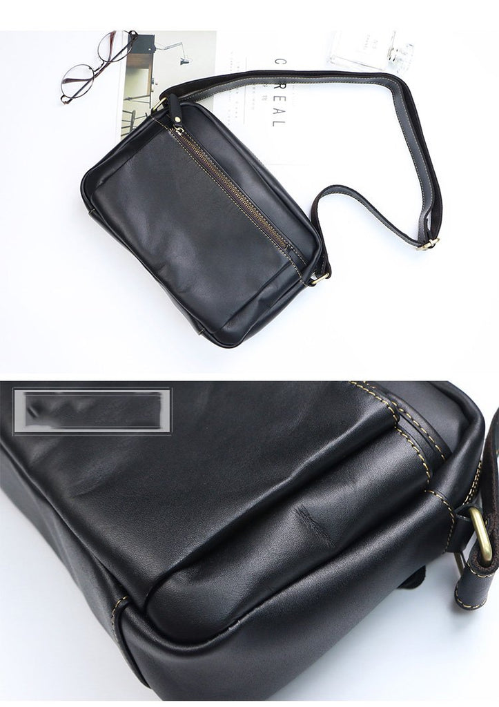 Design: Casual Black Leather Mens Small Courier Bags Blue Messenger Bags Brown Postman Bags For Men