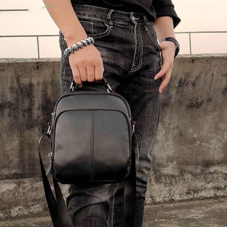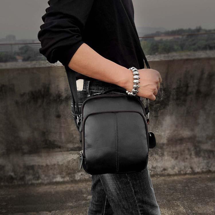Design: Casual Black LEATHER MENS SMALL VERTICAL SHOULDER BAG SIDE BAG COURIER BAG MESSENGER BAG FOR MEN