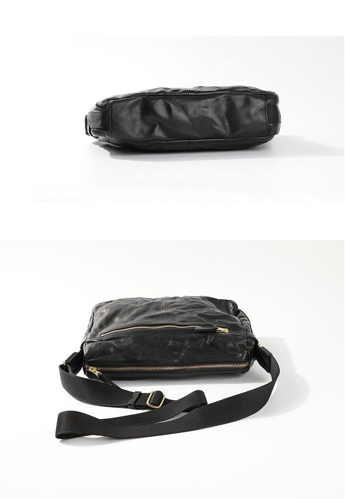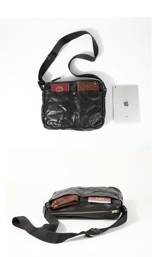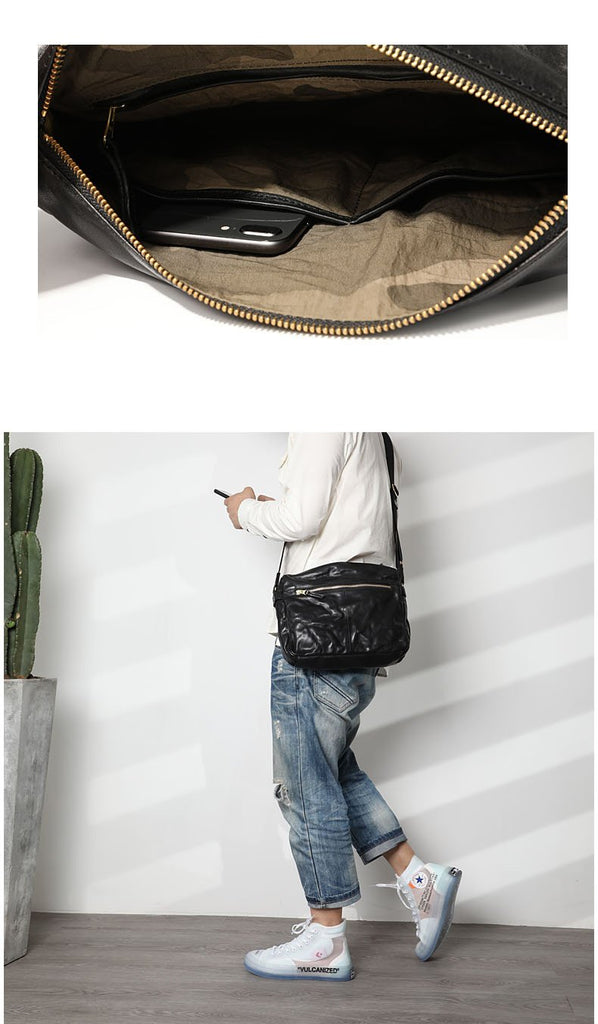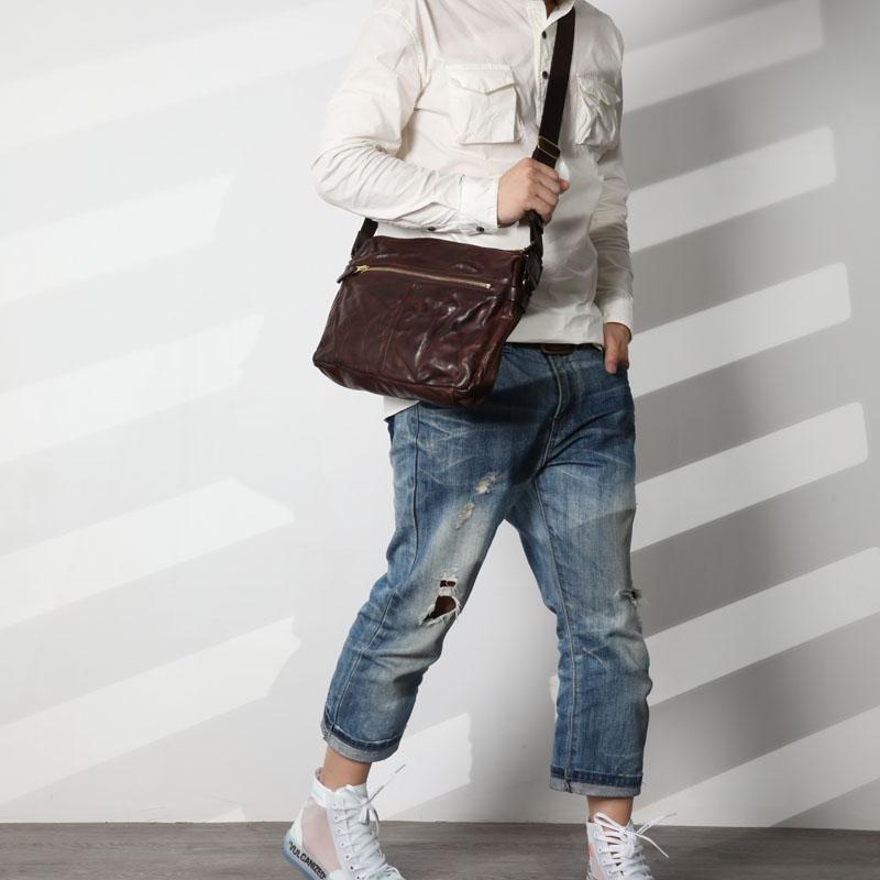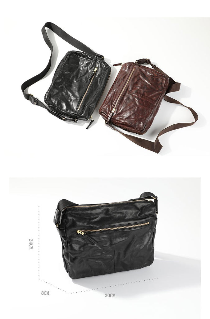 Design: Casual Black Soft Leather Mens Cool Side Bag Messenger Bag Brown Postman Courier Bag for Men