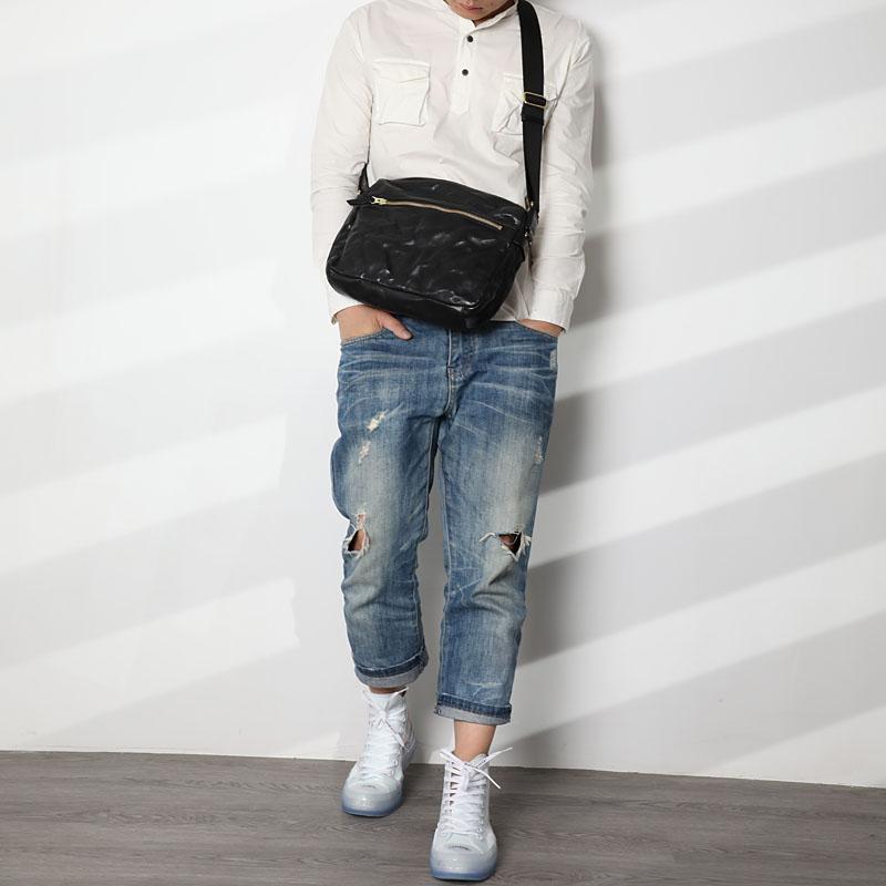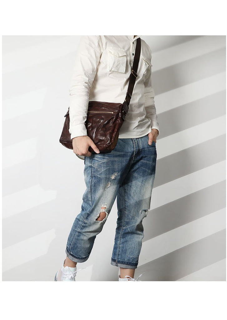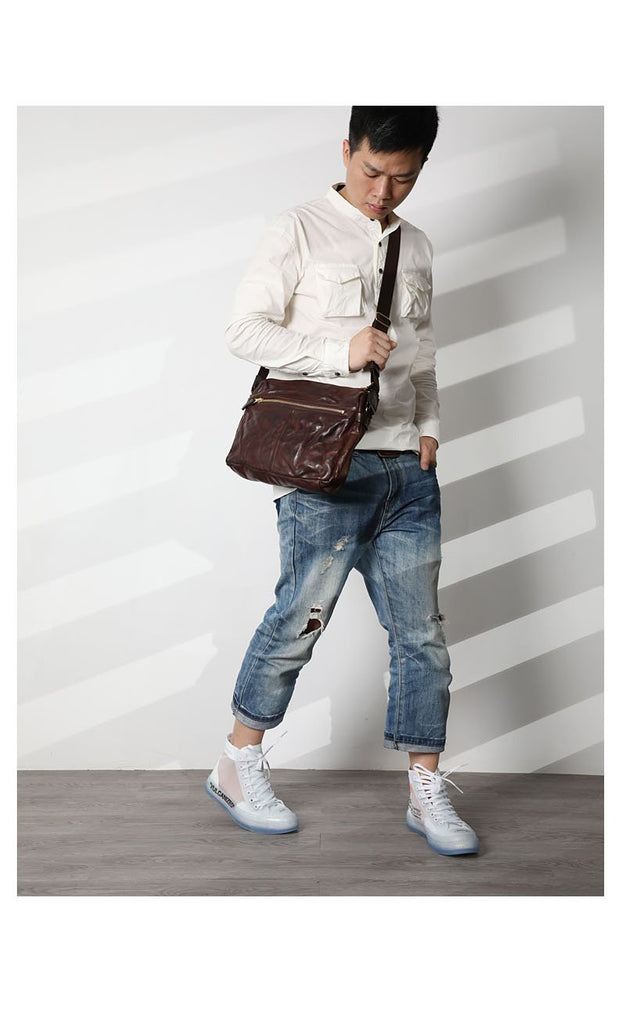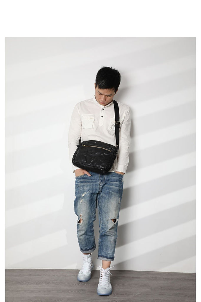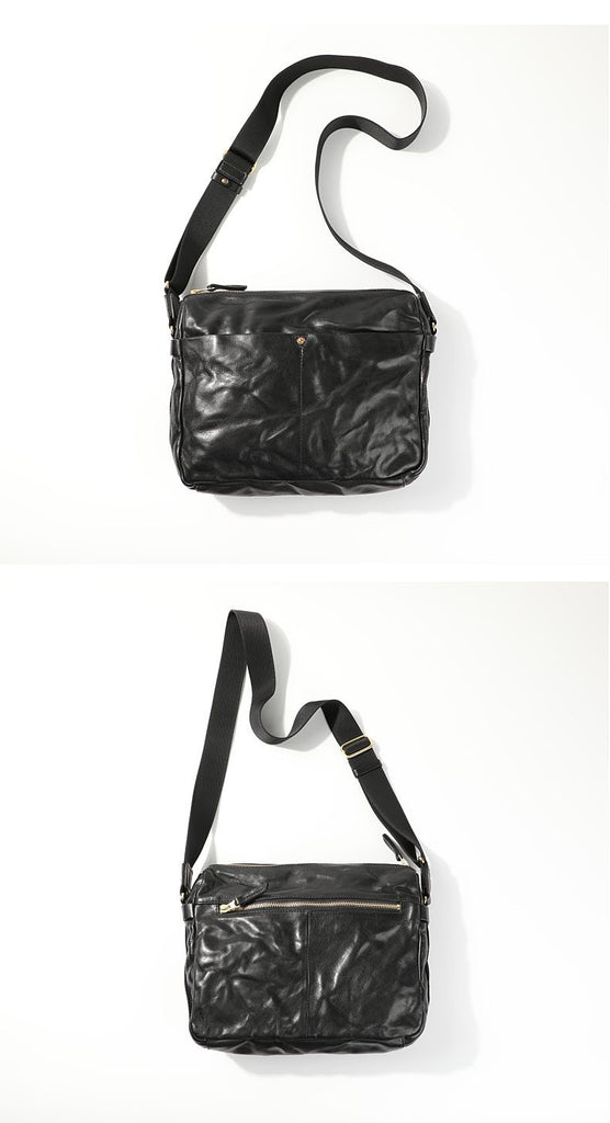 Design: Casual Black Soft Leather Mens Cool Side Bag Messenger Bag Brown Postman Courier Bag for Men