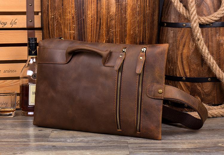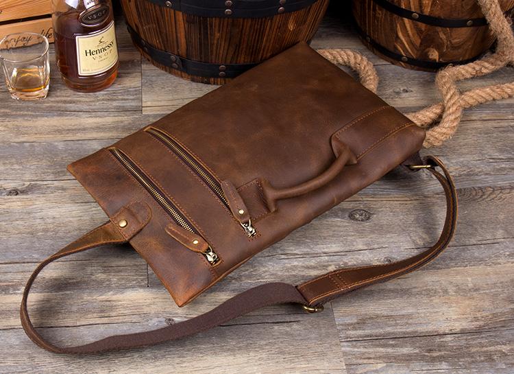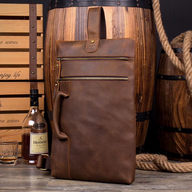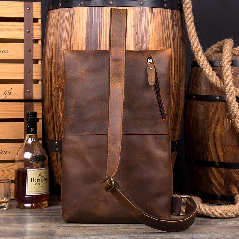 Casual Brown Leather Mens Large Sling Pack Sling Bag Chest Bag One Shoulder Backpacks for Men