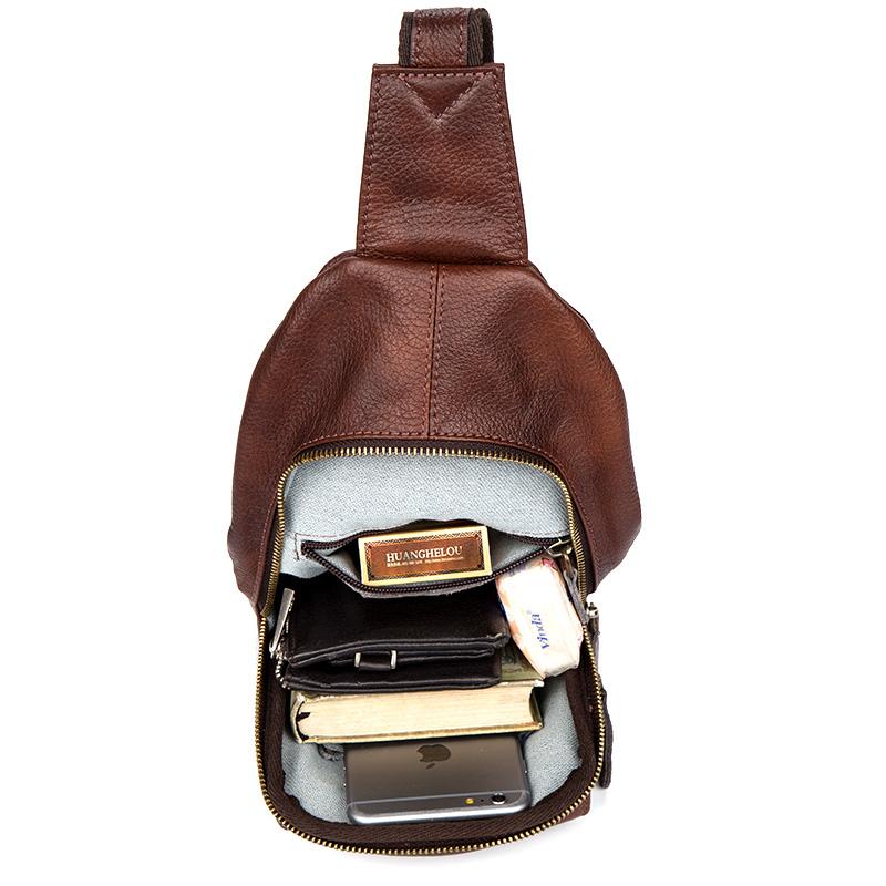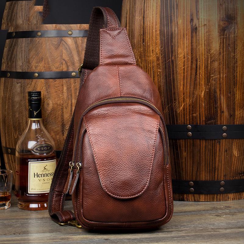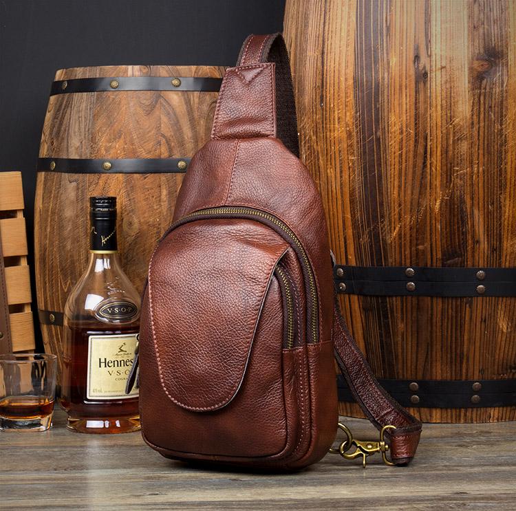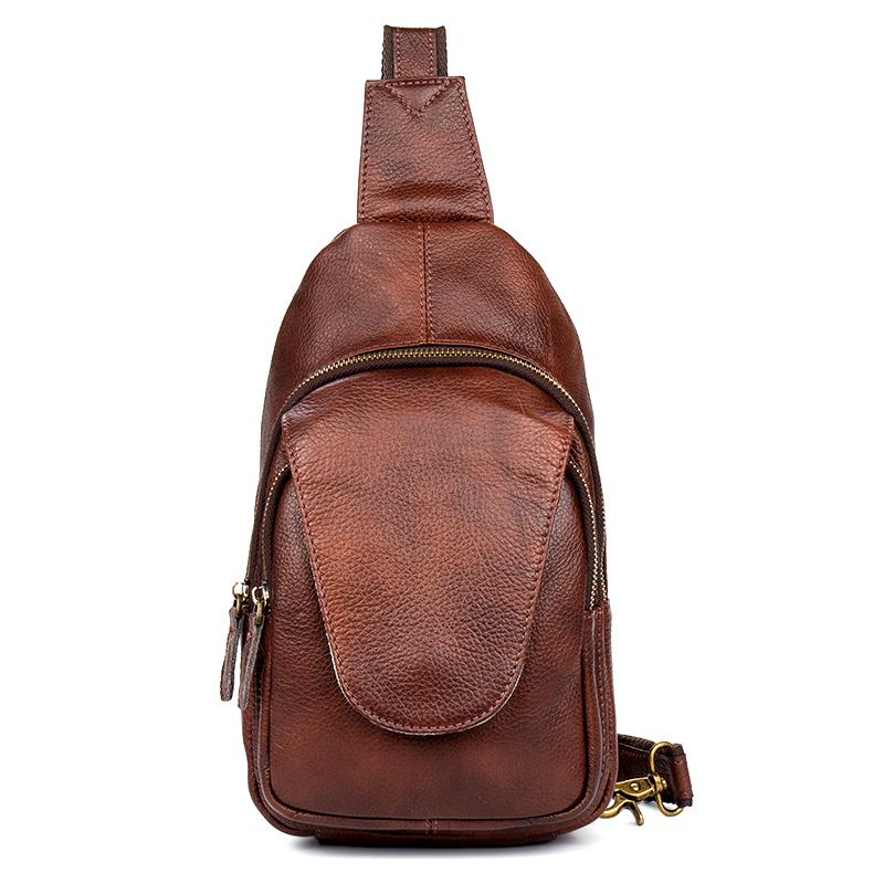 Design: Casual Brown Leather Mens Sling Pack Sling Bags Chest Bag One Shoulder Backpack for Men