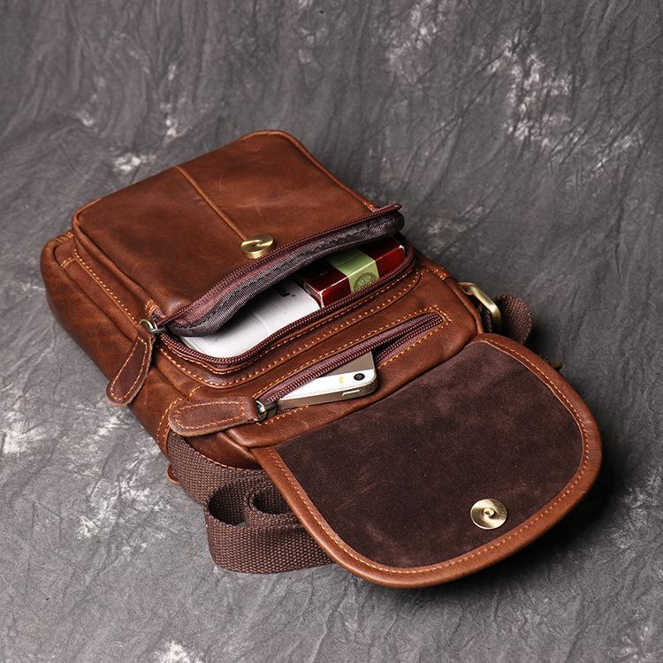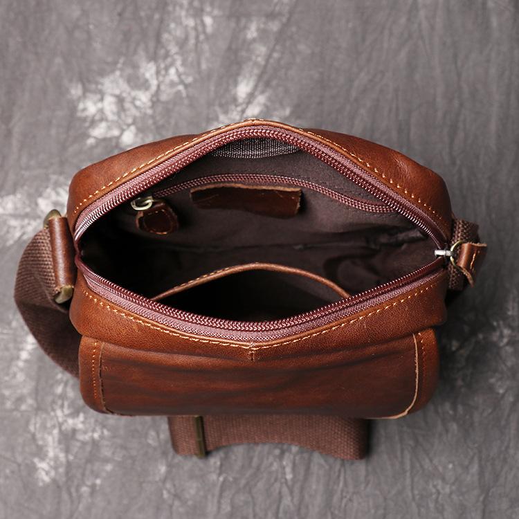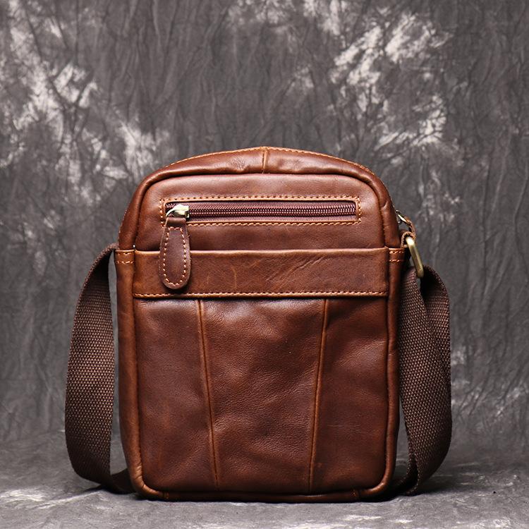 Brown LEATHER MENS Small SHOULDER BAG Vertical SIDE BAG Casual COURIER BAG Ipad MESSENGER BAG FOR MEN