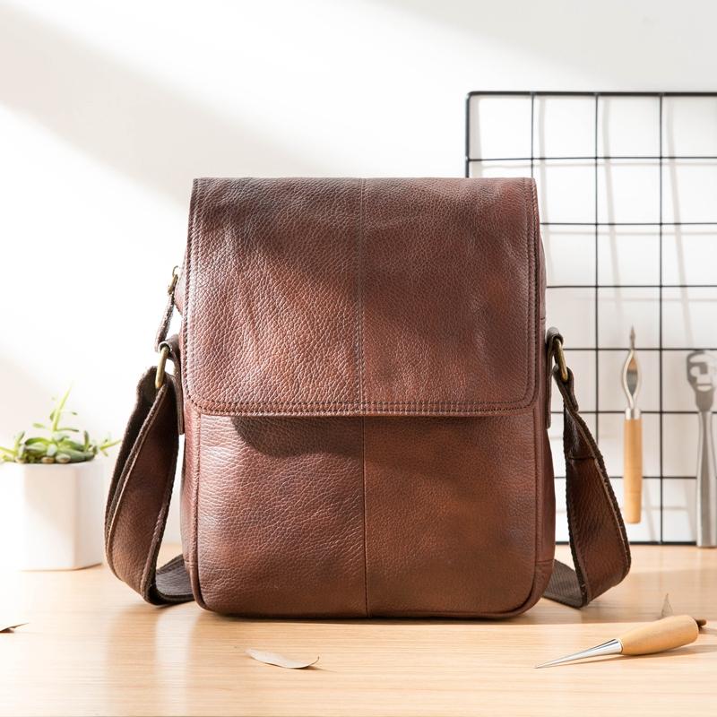 Design: Casual Leather Mens 8 inches Vertical Shoulder Bag Red Brown Messenger Bags Side Bag Sling Bag for Men