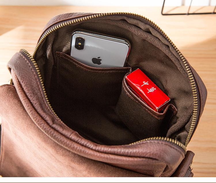 Style: Casual Leather Mens 8 inches Vertical Shoulder Bag Red Brown Messenger Bags Side Bag Sling Bag for Men