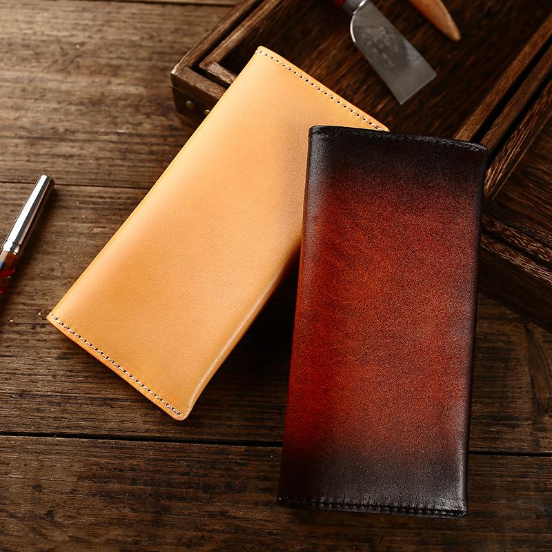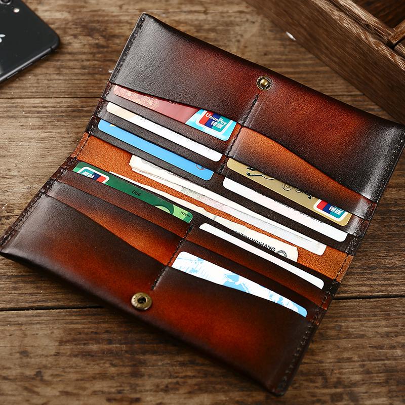 Style: Casual Retro Leather Mens Wine Red Slim Long Wallet Light Beige Bifold Card Wallet Clutch Wallet For Men