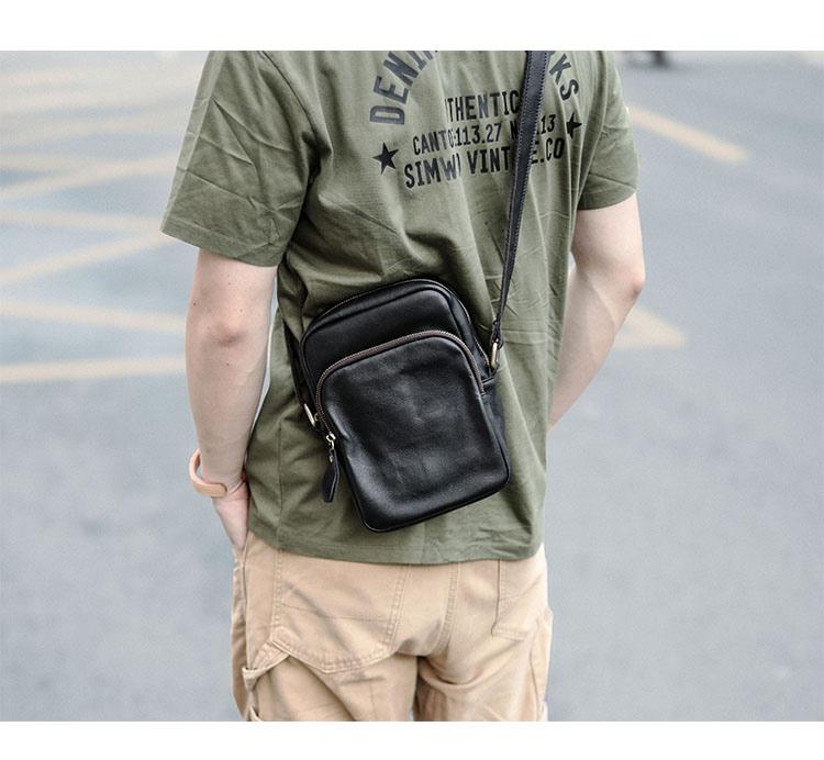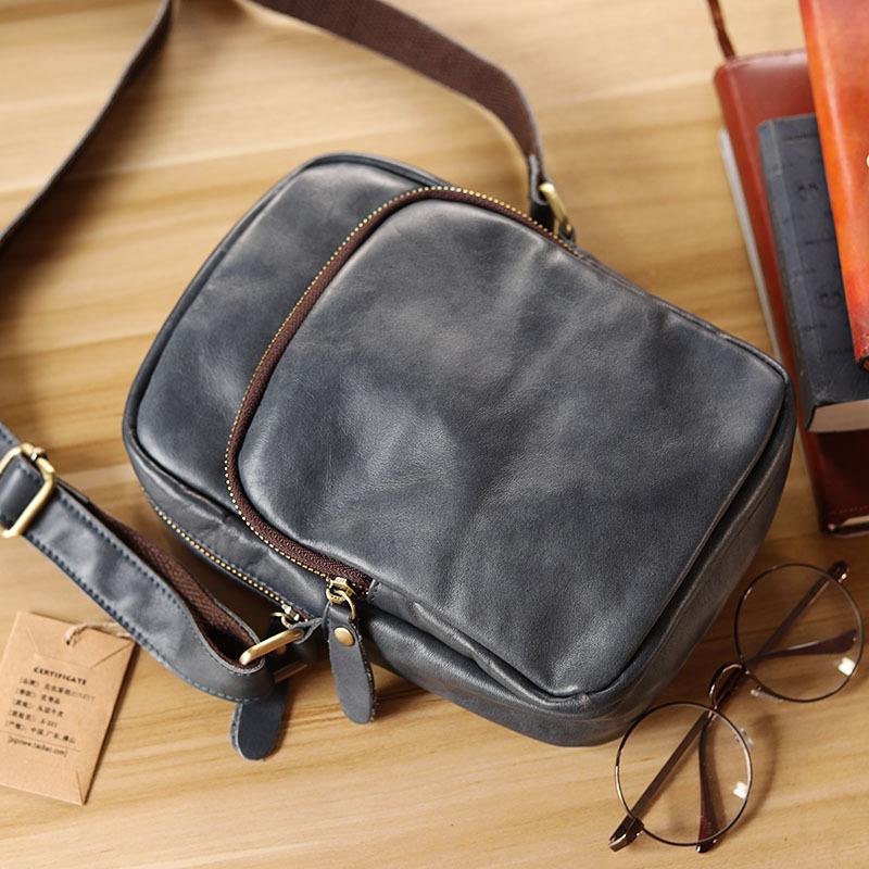 Design: Casual Small Leather Mens Black Side Bag Gradient Blue Postman Bag Messenger Bag For Men