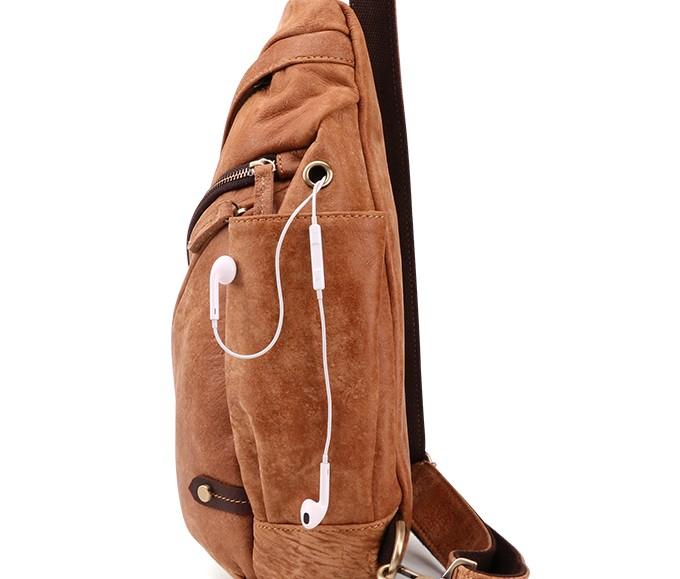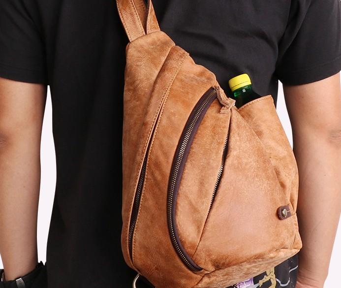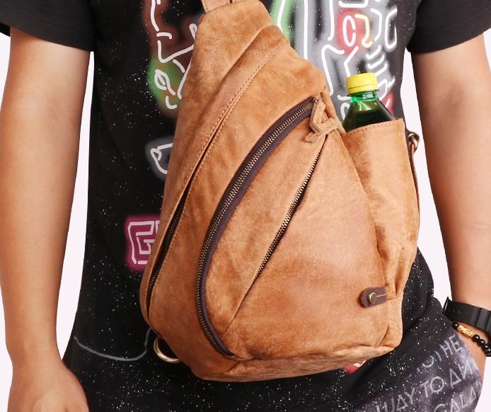 Style: Genuine Leather Cool Chest Bag Sling Bag Crossbody Bag Travel Bag Hiking Bag For Mens