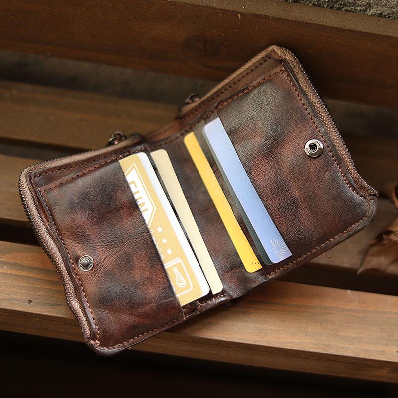 Design: Cool Black Leather Mens Card billfold Wallet Bifold SMall License Wallet Brown Front Pocket Wallets For Men