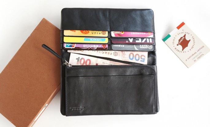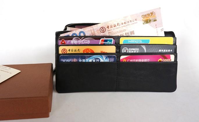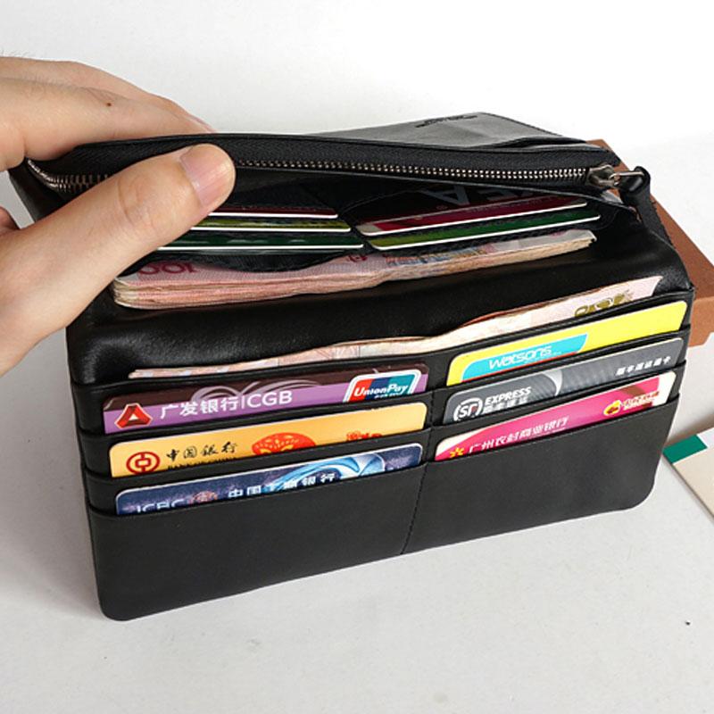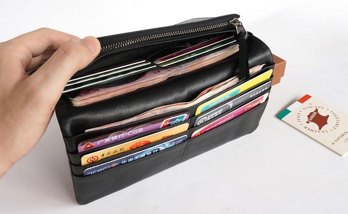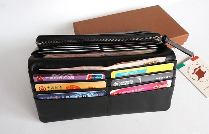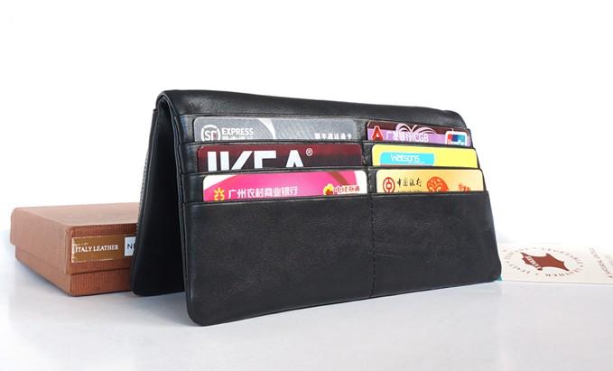Design: Cool Black Mens Leather Bifold Long Wallet Phone Soft Leather Long Wallet for Men