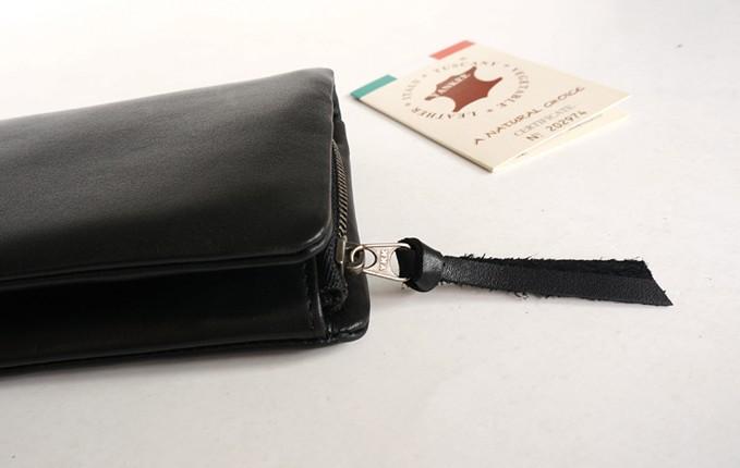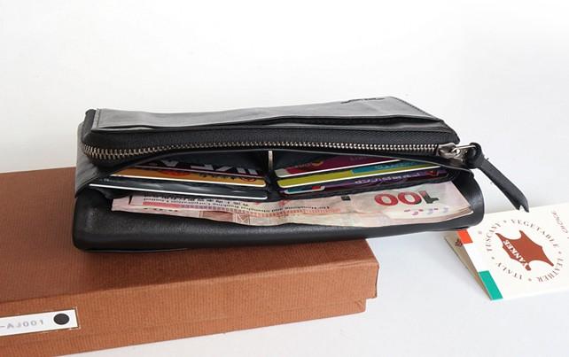 Slots: 3 full size bill slots, 12 card holders, 1 zipper slot