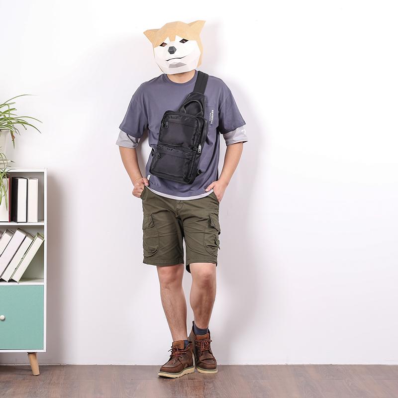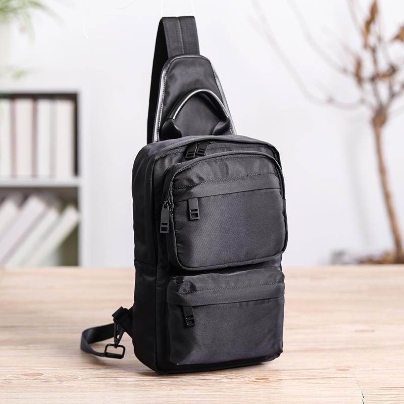 Style: Cool Black Nylon Backpack Men's Large Sling Bag Chest Bag One shoulder Backpack Sports Bag For Men