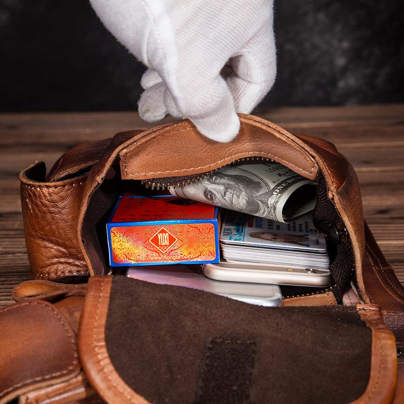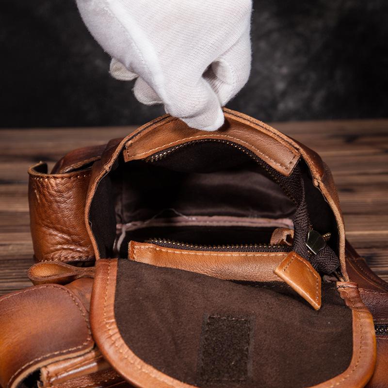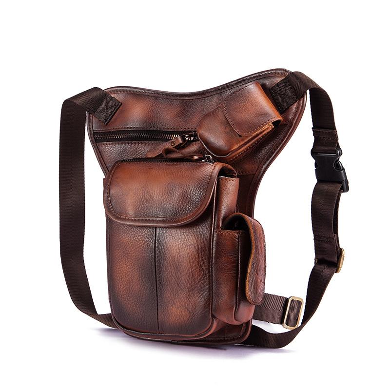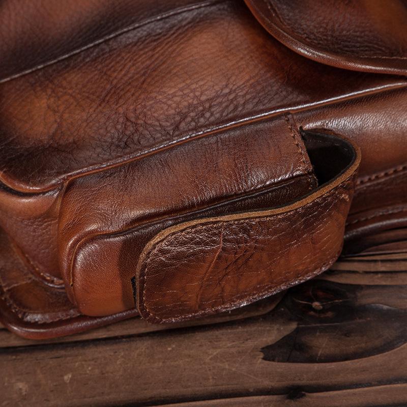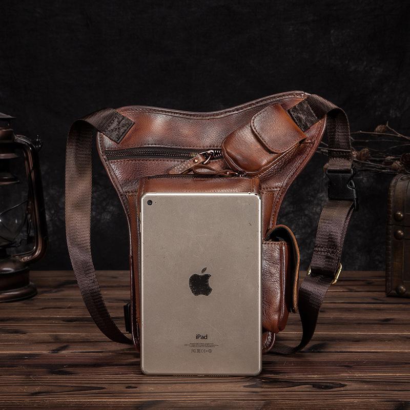 Design: Cool Brown Leather Men's 8 inches Cell Phone Holster Shoulder Bag Mini Side Bag Belt Pouch For Men
