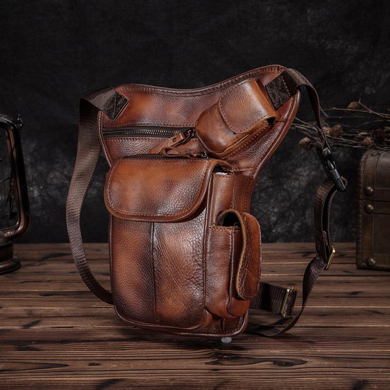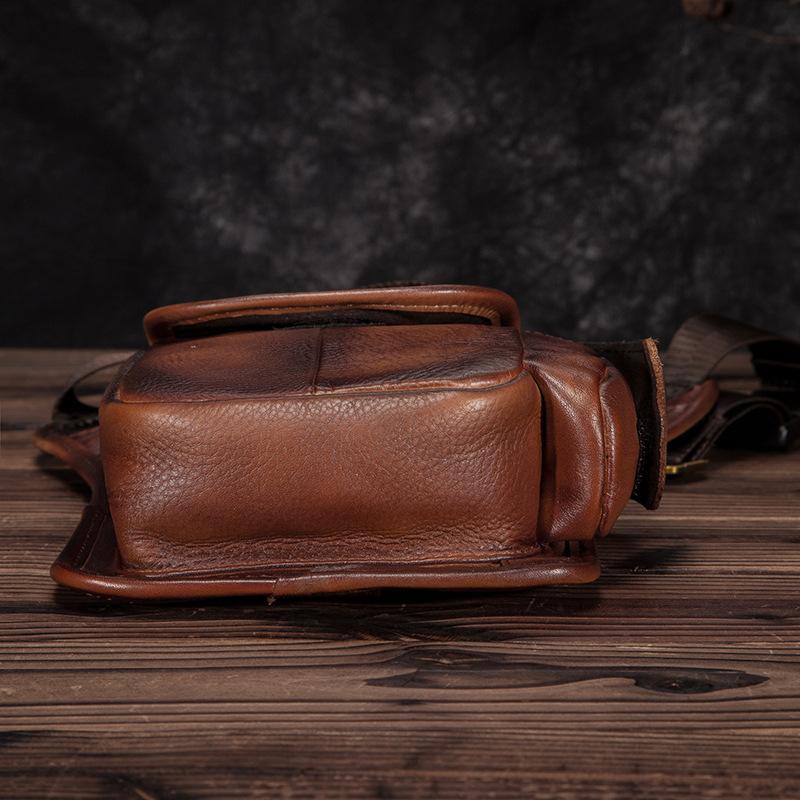 Style: Cool Brown Leather Men's 8 inches Cell Phone Holster Shoulder Bag Mini Side Bag Belt Pouch For Men