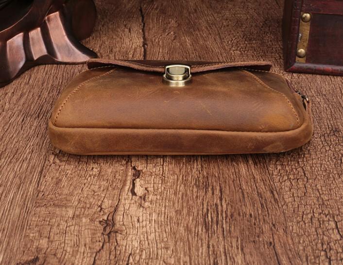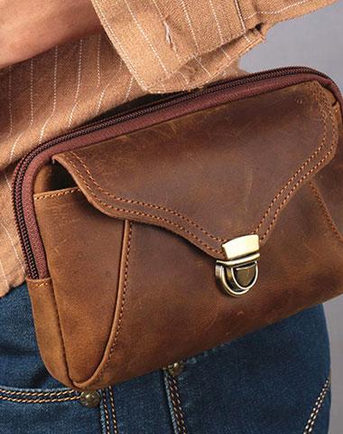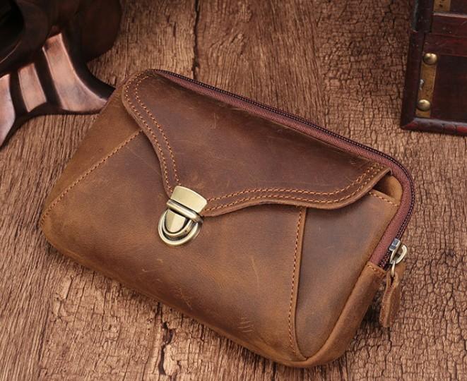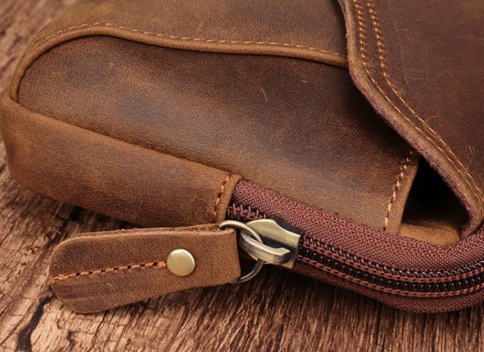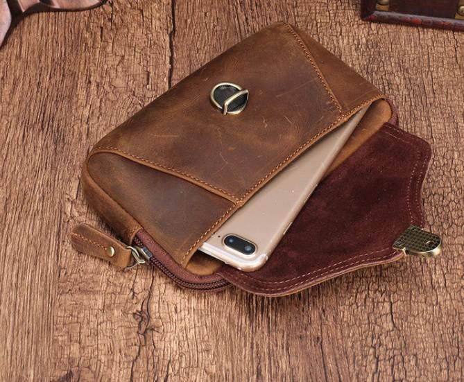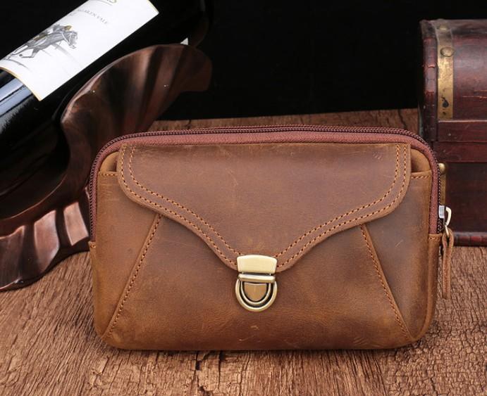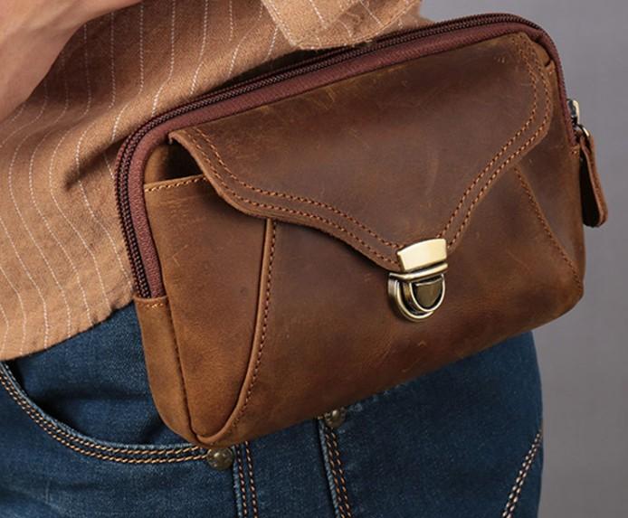 Design: Cool Brown Mens Leather Belt Bag Belt Pouch Cell Phone Holster Waist Bags For Men