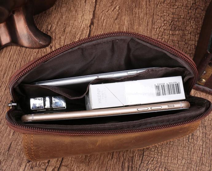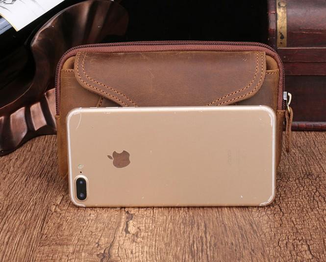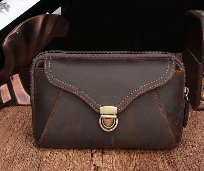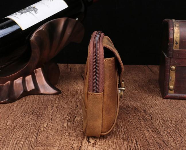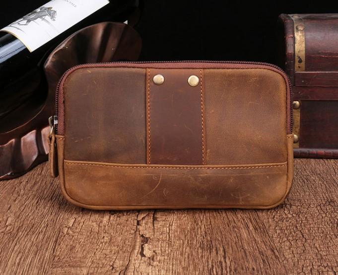 Style: Cool Brown Mens Leather Belt Bag Belt Pouch Cell Phone Holster Waist Bags For Men