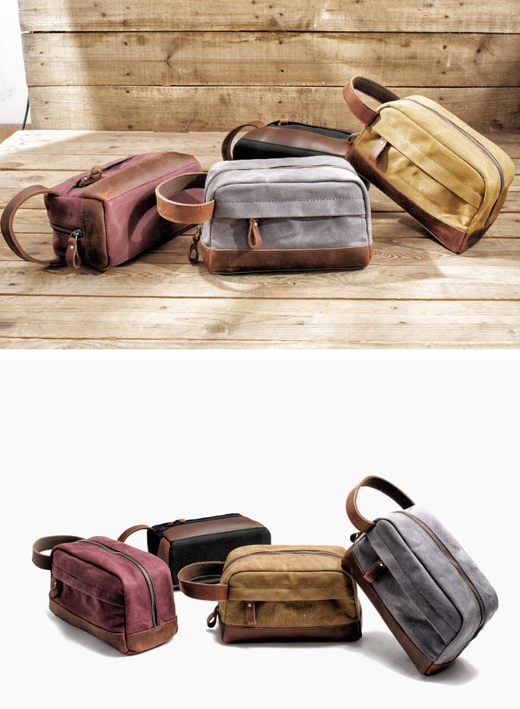 Style: Cool Canvas Leather Mens Clutch Bag Handbag Storage Bag Wash Bag For Men