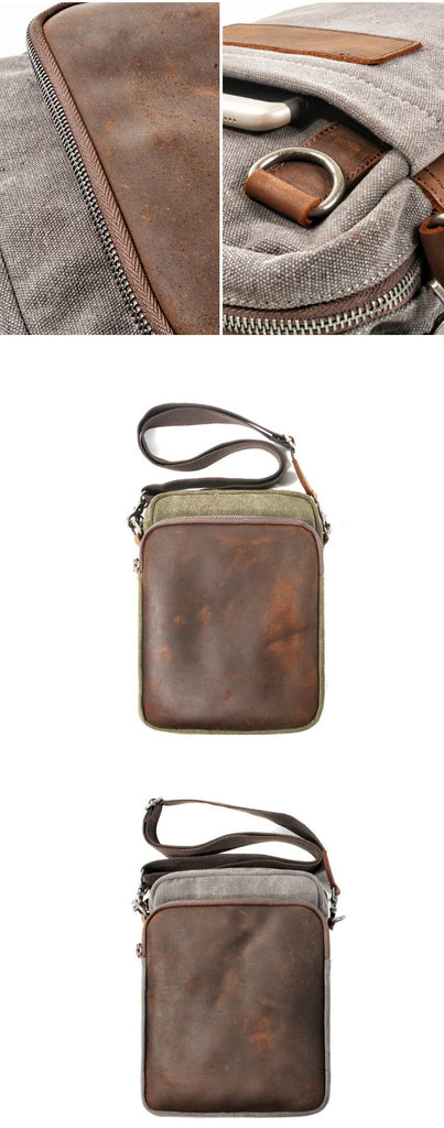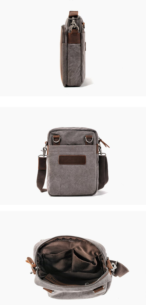 Design: Cool Canvas Leather Mens Side Bag Black Shoulder Bag Multi- Function Messenger Bag for Men