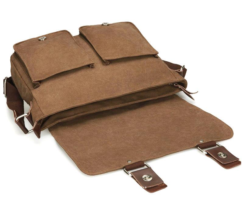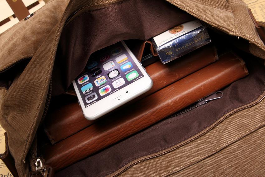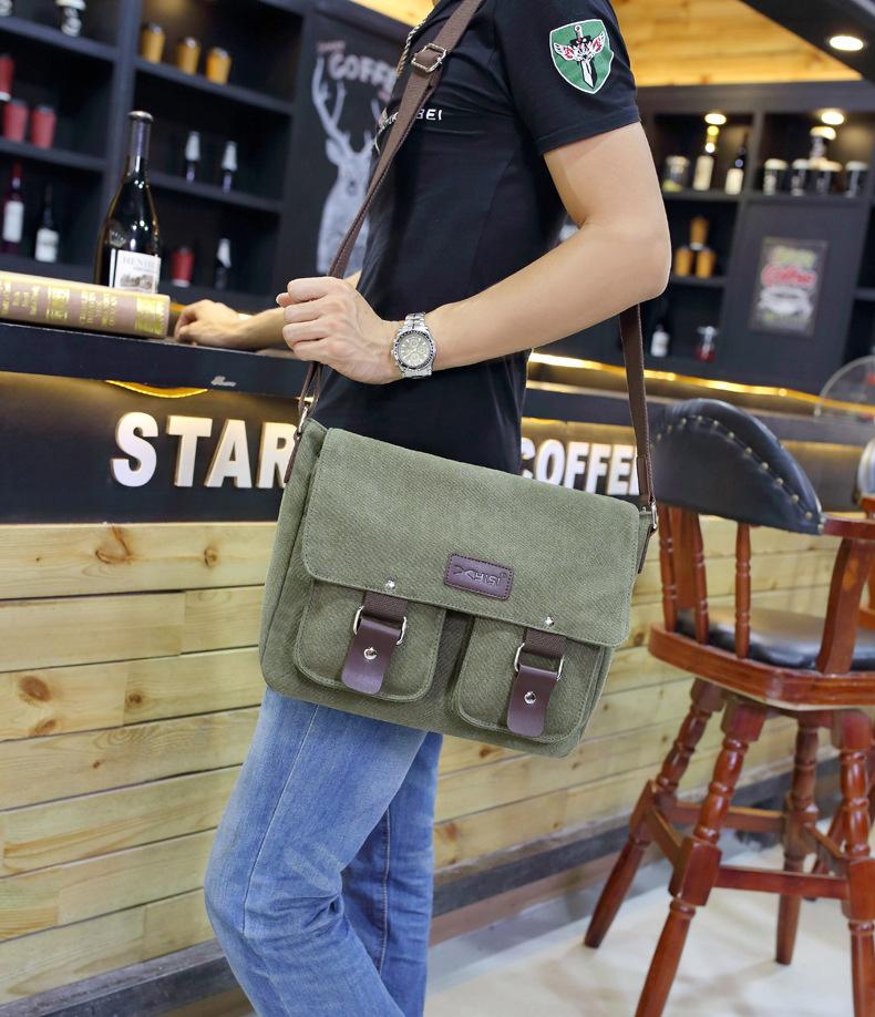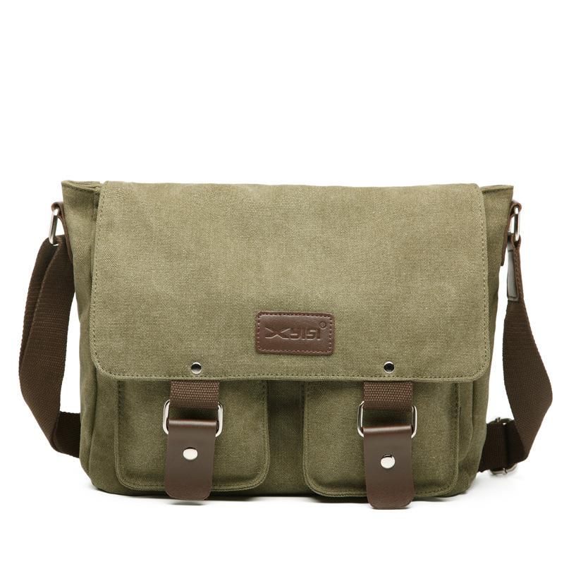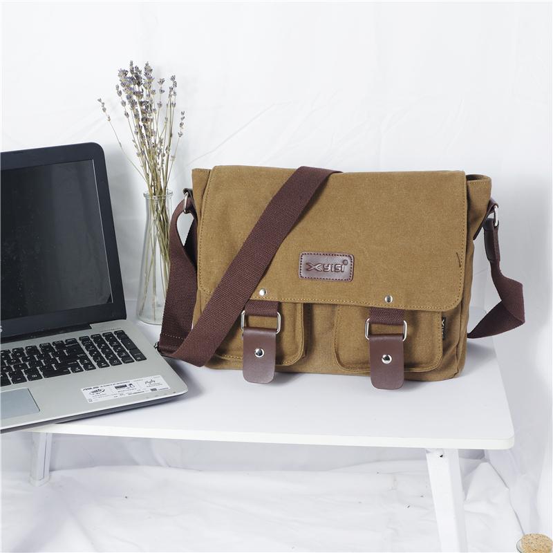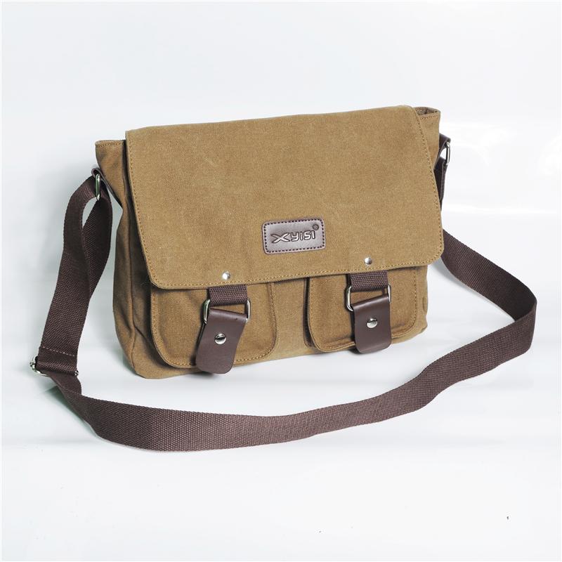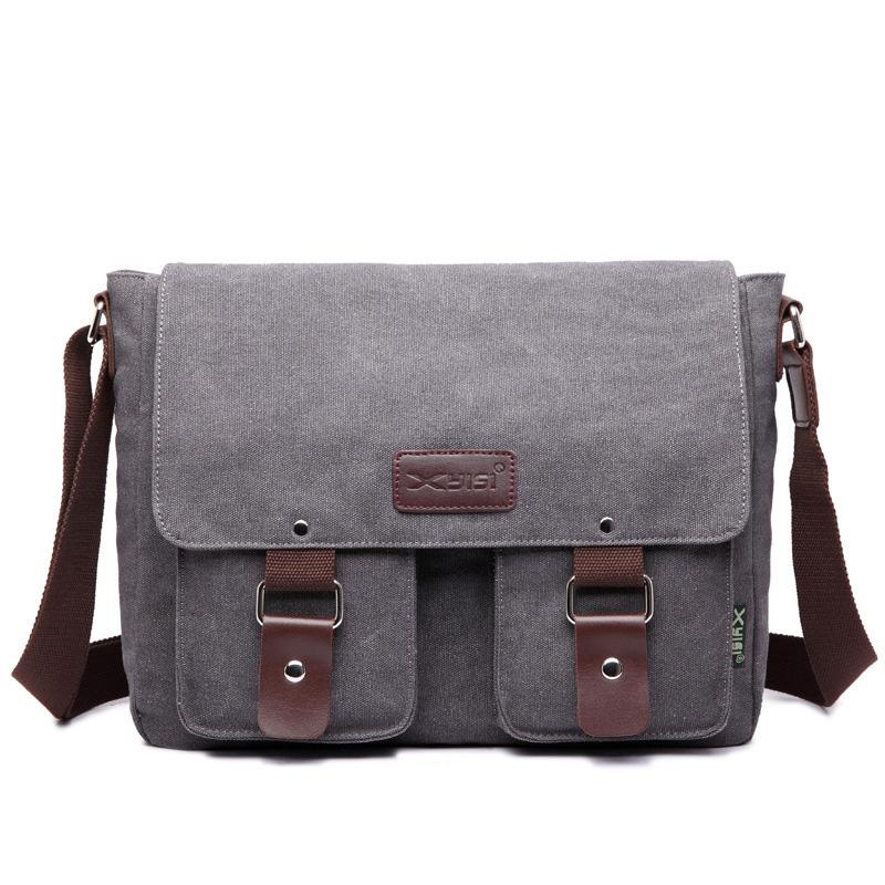 Design: Cool Canvas Leather Mens Simple Casual Bag Shoulder Bag College Bag Messenger Bag for Men